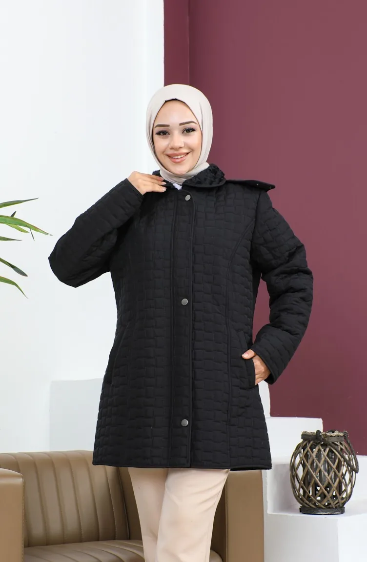 Manteau Matelassé à Carreaux Grande Taille Noir 6141-01 6141-01