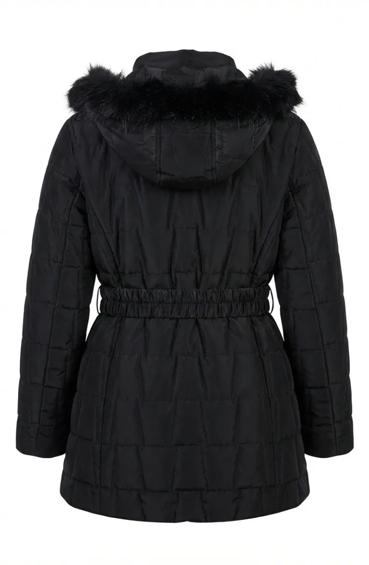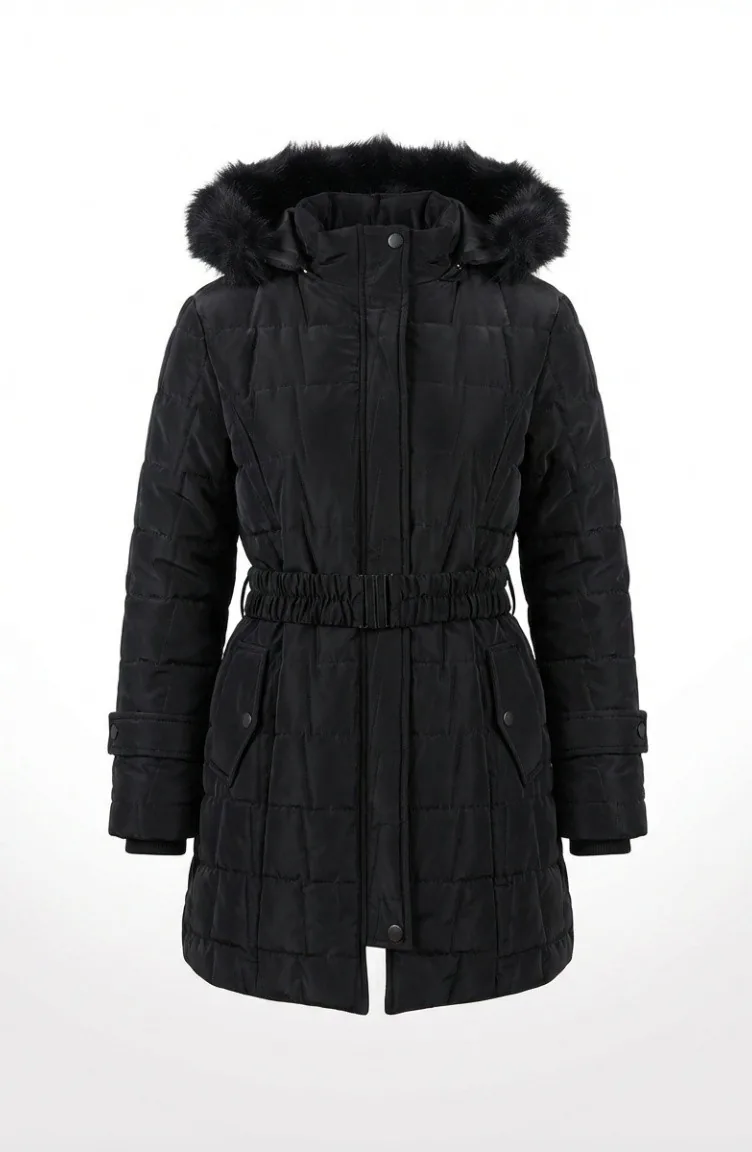 Veste à Capuche Grande Taille Avec Ceinture 6345-01 Noire 6345-01