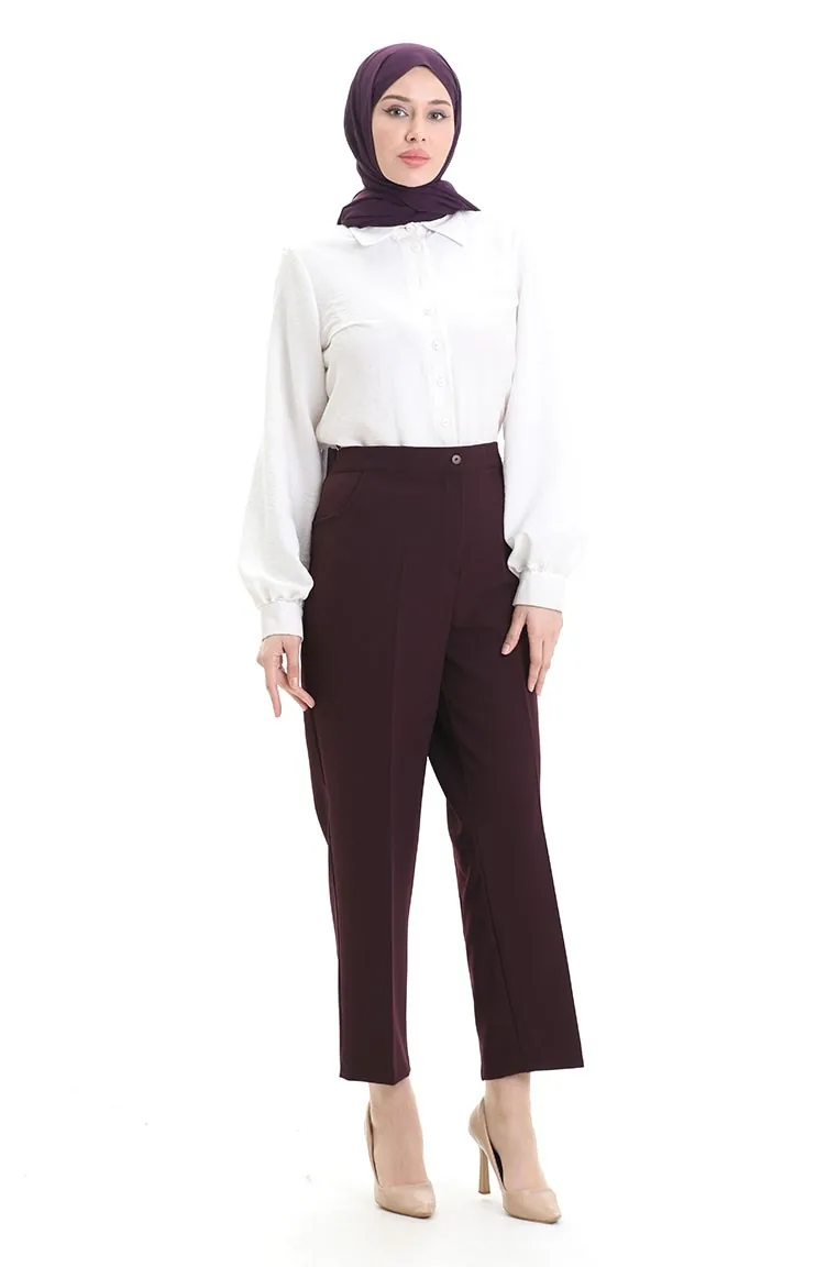 Pantalon à Poches Grande Taille 4003-04 Rouge Bordeaux 4003-04