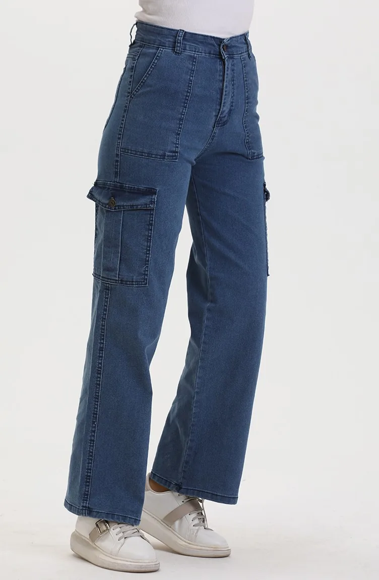 Pantalon Jeans Poche Cargo 2828-03 Bleu Jean 2828-03
