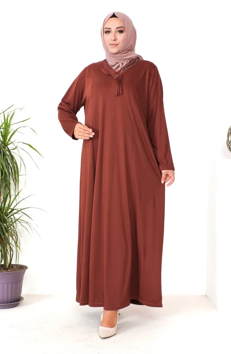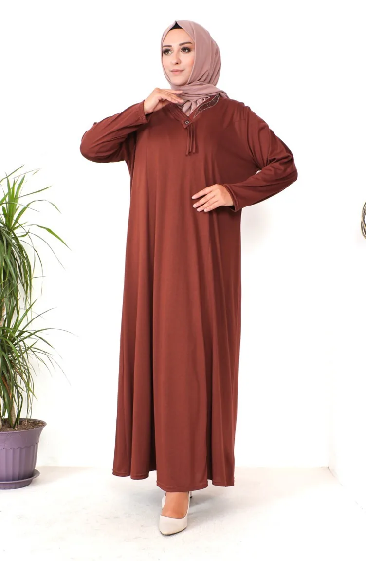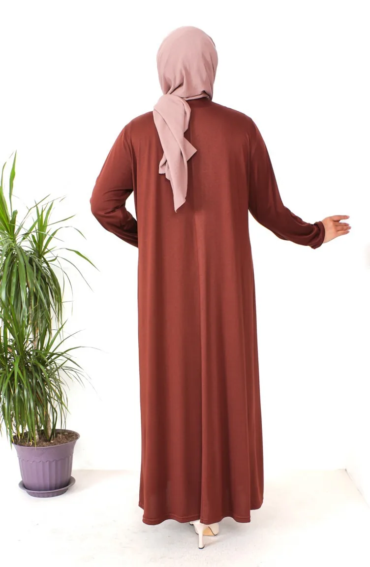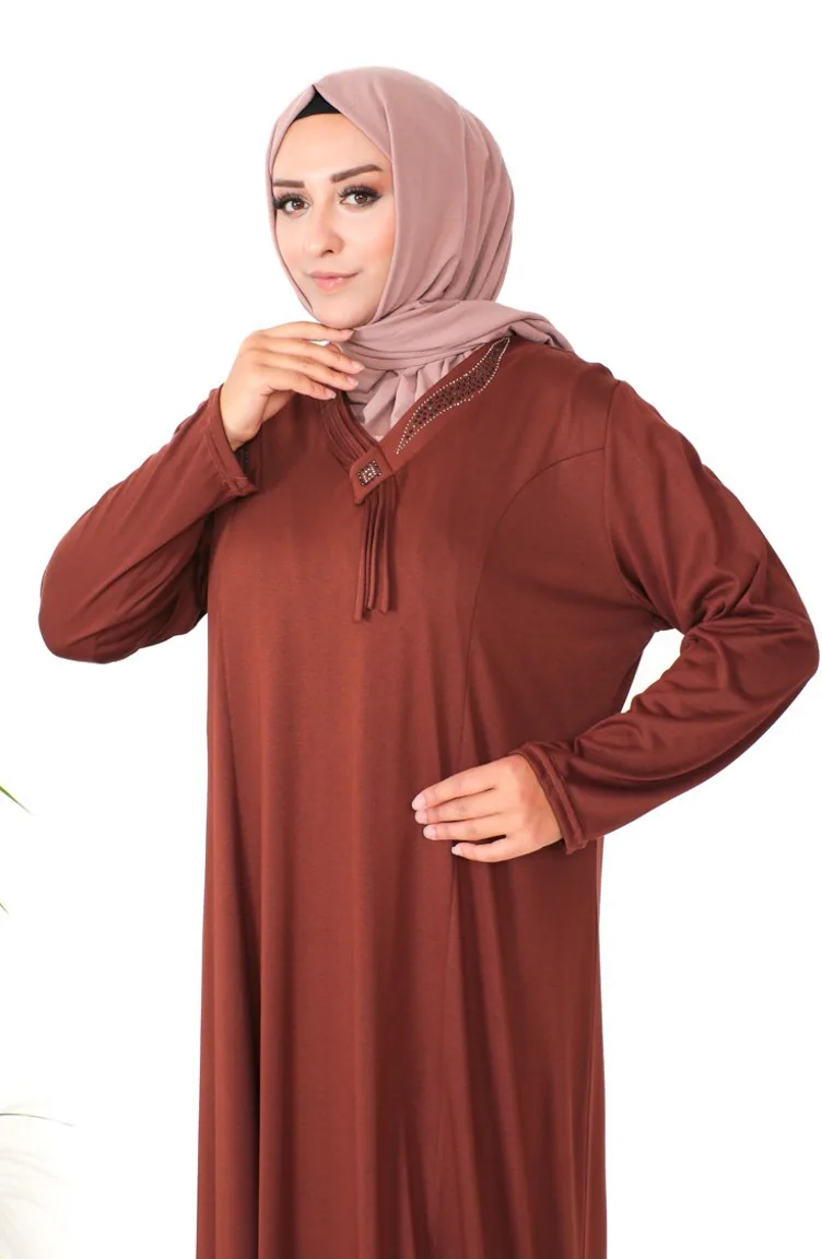 Couleur Tabac. Viscose est un type de tissu synthétique et est pratique à utiliser. İmprimé. Sans doublure. Manches longues. Col Zéro. Adapté pour les 4 saisons. Option de grande taille disponible.