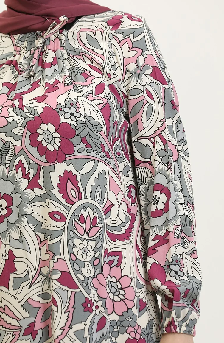 Robe En Viscose à Motifs Grande Taille 44851E-03 Rose Poudré 44851E-03
