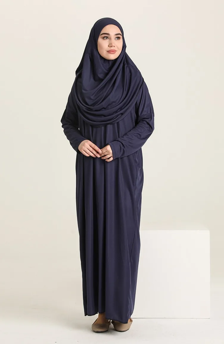 Couleur Bleu Marine. C'est un tissu Jersey. Simple. Manches chauve-souris. Col Zéro. Adapté pour les 4 saisons. Option de grande taille disponible.