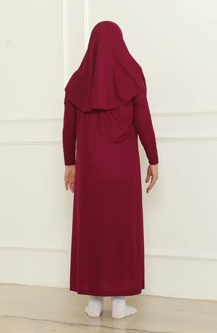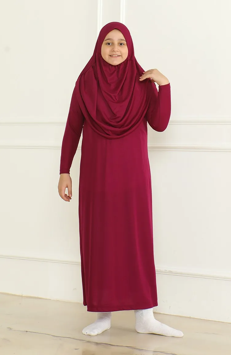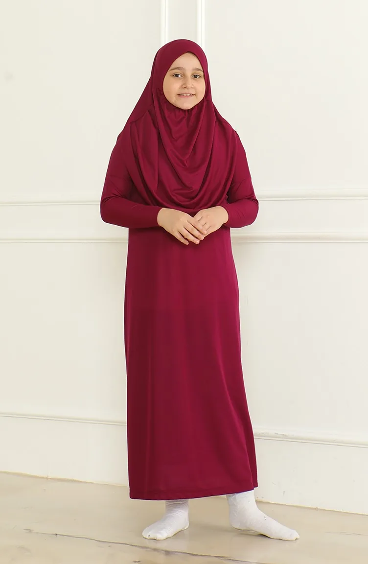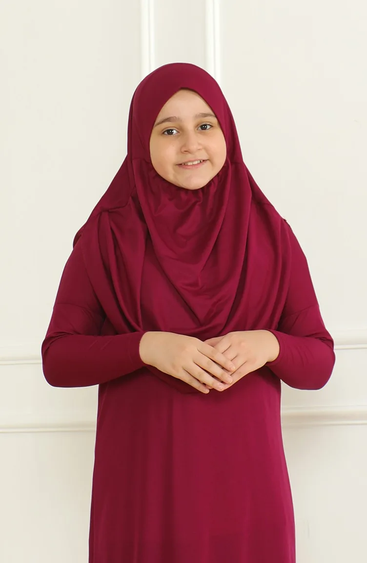 Tek Parça Başörtülü Pratik Çocuk Namaz Elbisesi 1985-05 Mürdüm 1985-05
