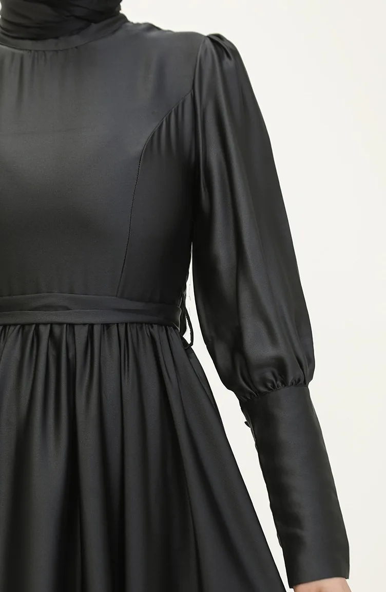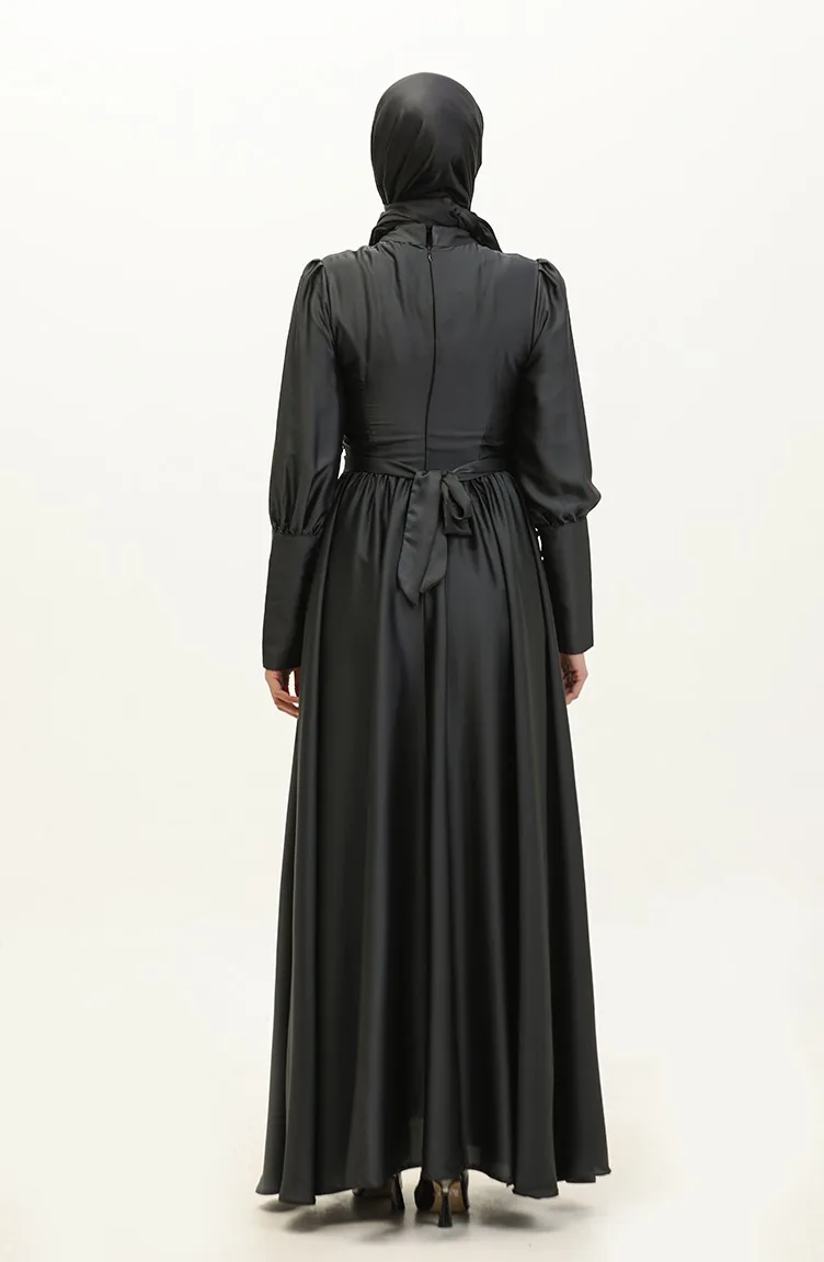 Robe De Soirée Coupe Coupée En Satin 6080-15 Fumé 6080-15