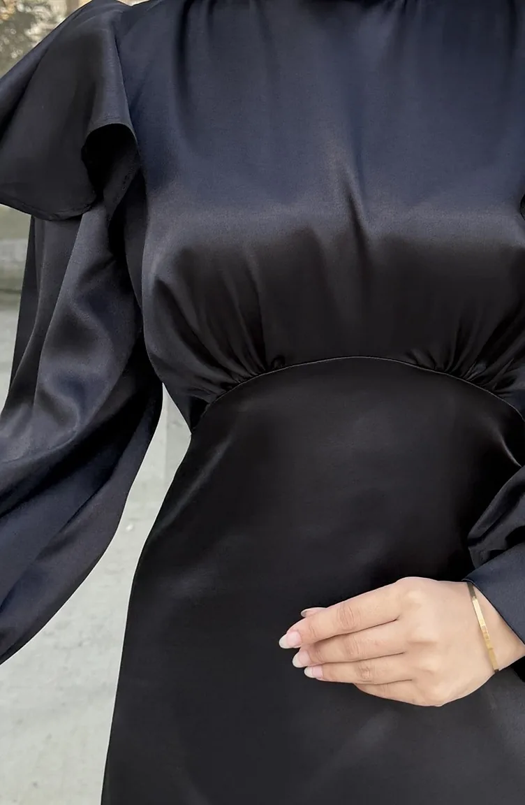 Robe De Soirée Eliza En Satin Noir 4661-05 4661-05