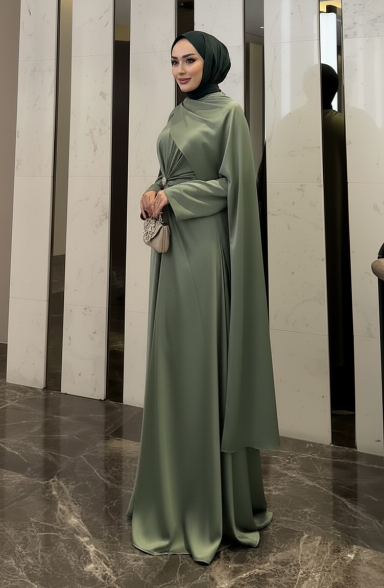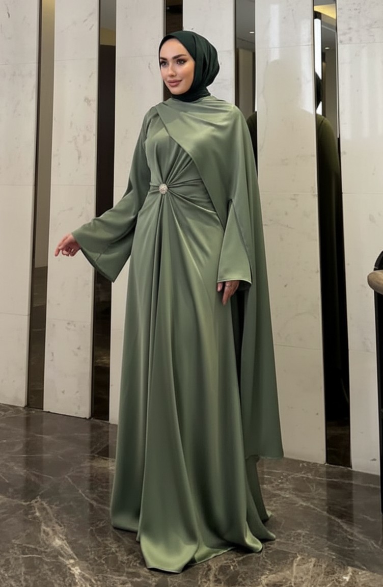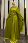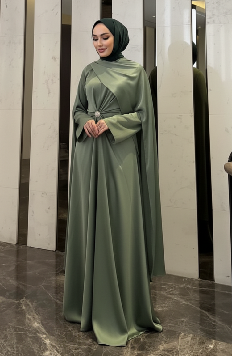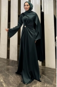 Robe De Soirée En Satin Cape 4664-02 Vert émeraude 4664-02