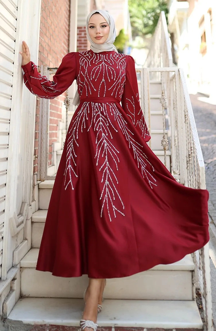 Robe De Soirée En Satin Pierre 5803-02 Bordeaux 5803-02