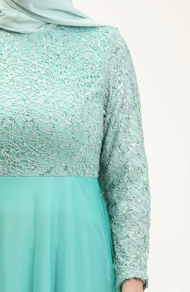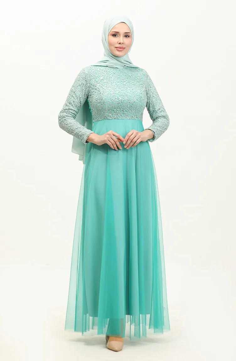 Robe De Soirée Tulle A Paillettes 3412-03 Vert 3412-03