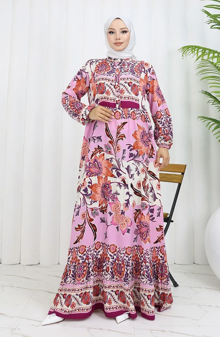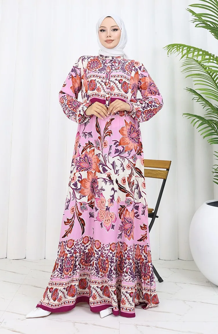 Alaçatı Robe Viscose à Motifs 0334-02 Beige Rose Poudré 0334-02