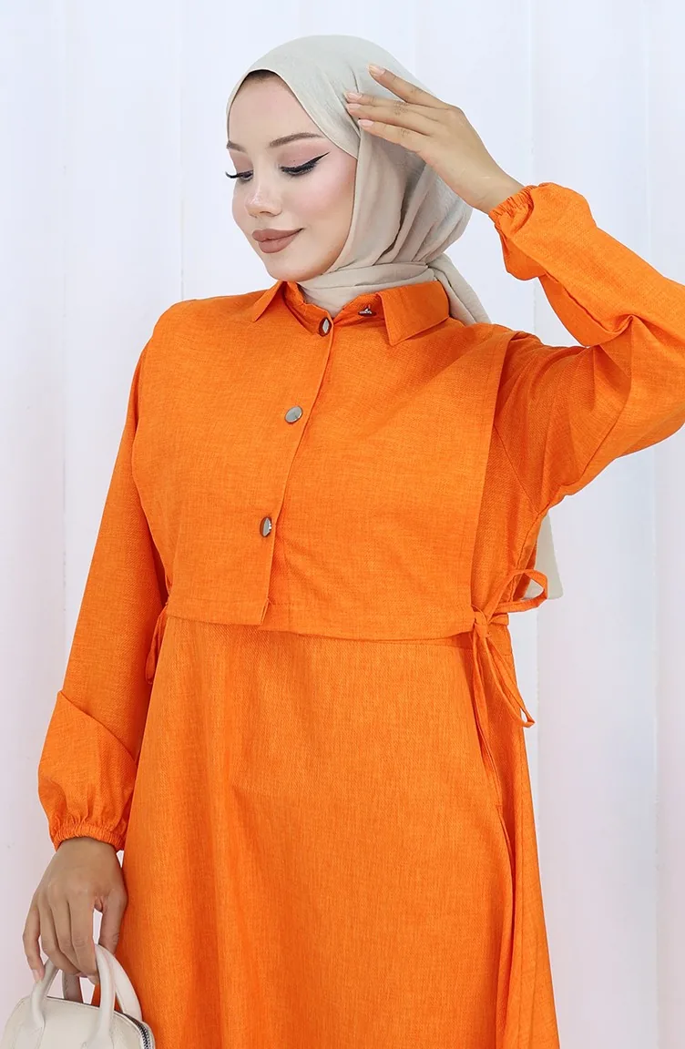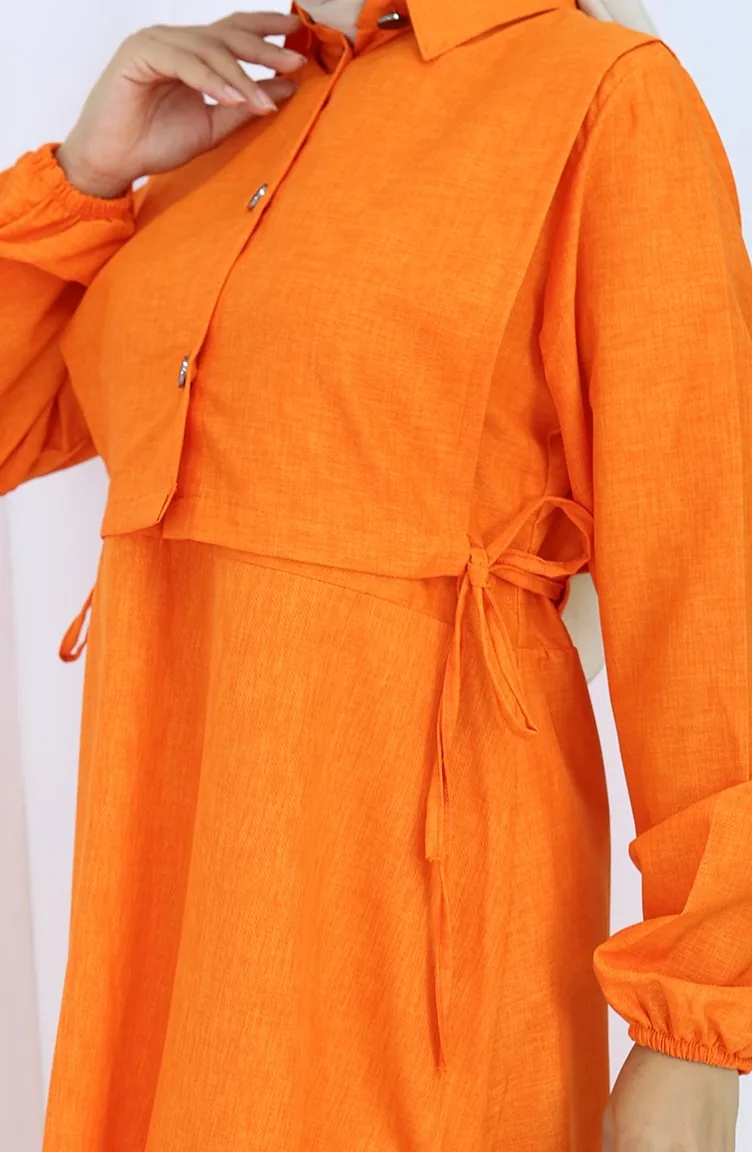 Ensemble Deux Pièces En Lin Avec Gilet Et Robe 2141-12 Orange 2141-12