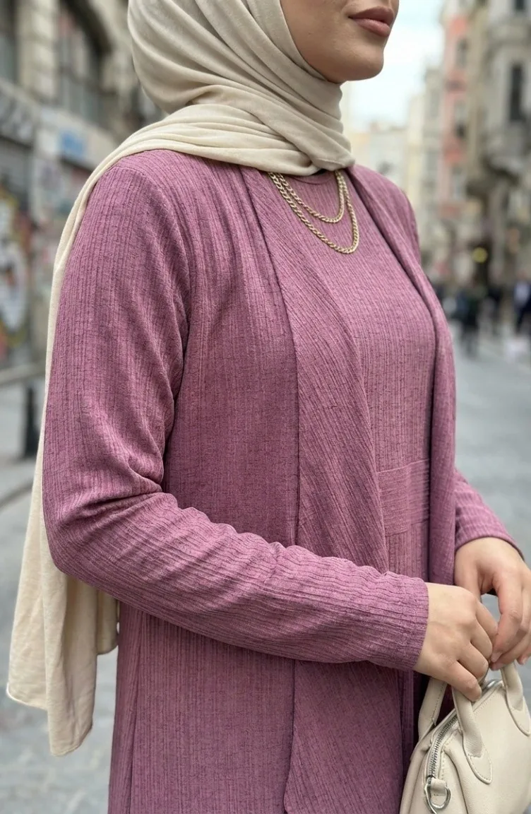 Ensemble Deux Pièces Robe Et Gilet 6527-03 Rose 6527-03