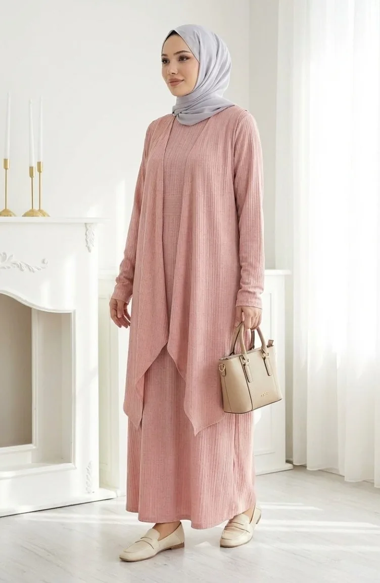 Ensemble Deux Pièces Robe Et Gilet 6527-07 Rose Poudré 6527-07