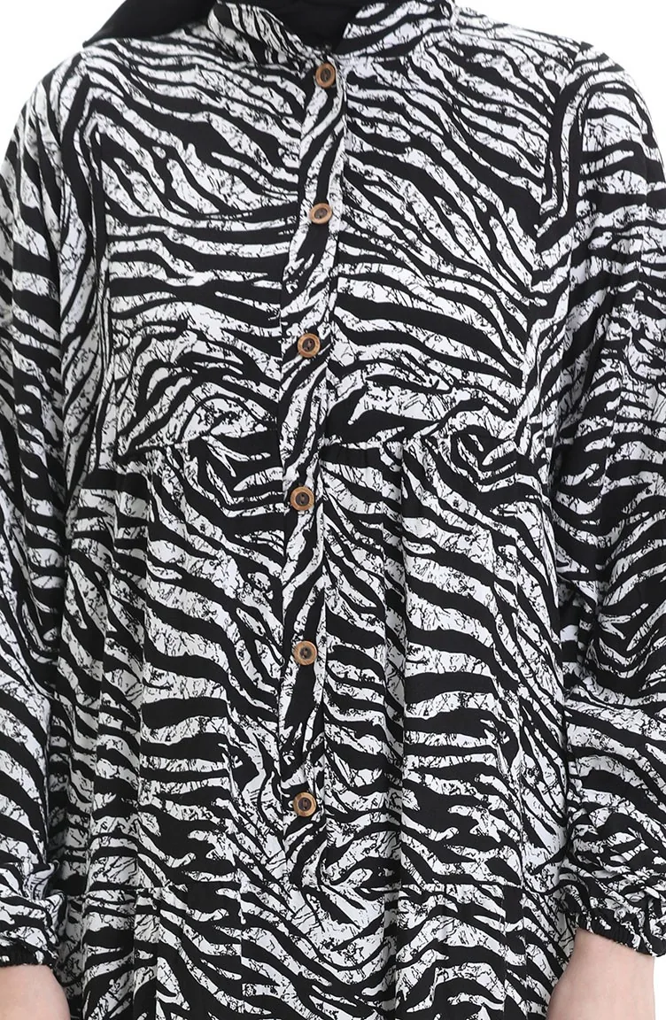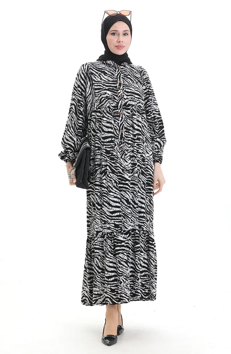 Robe à Motifs à Demi-bouton 2070-02 Noir Et Blanc 2070-02