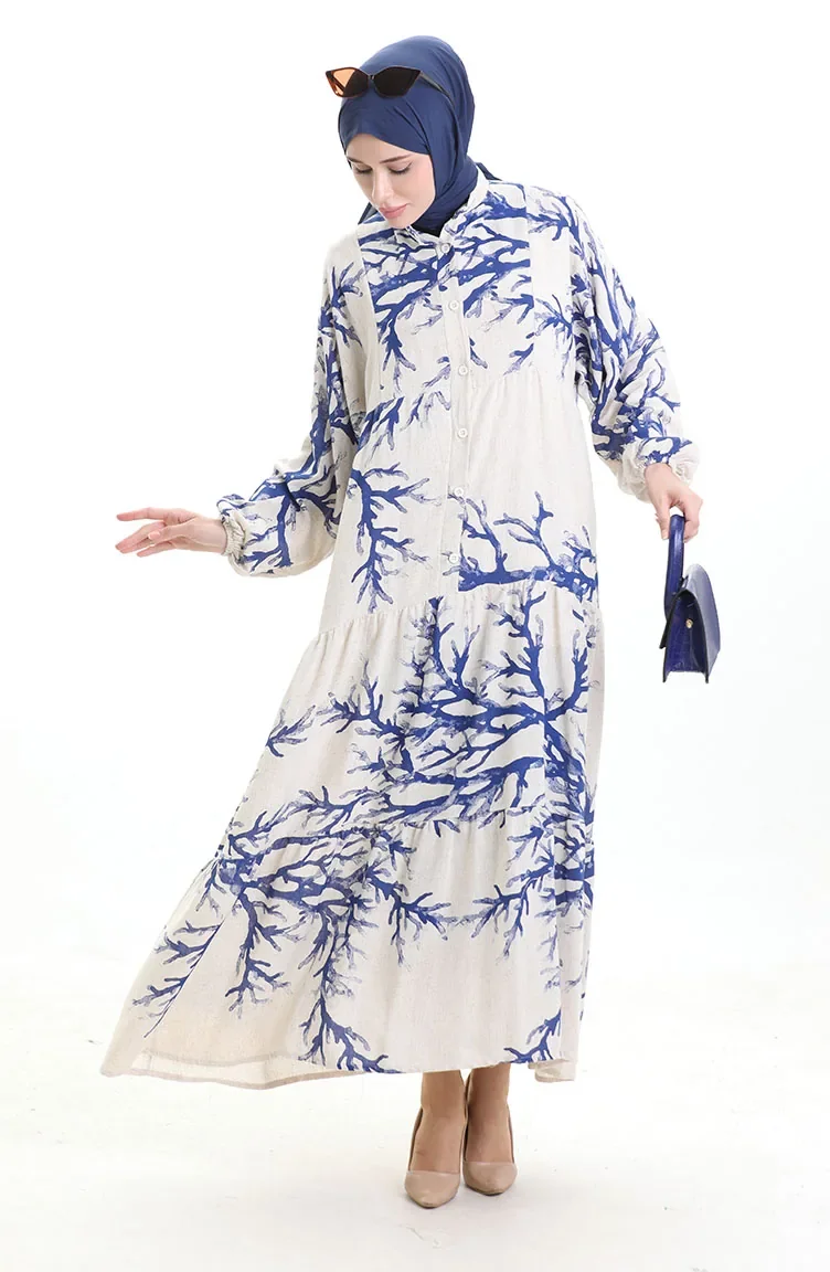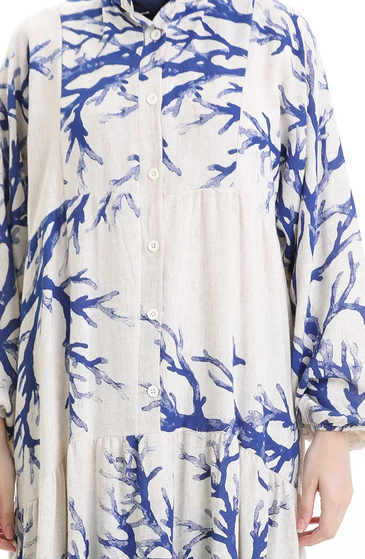 Robe à Motifs à Demi-bouton 2110-05 Indigo 2110-05