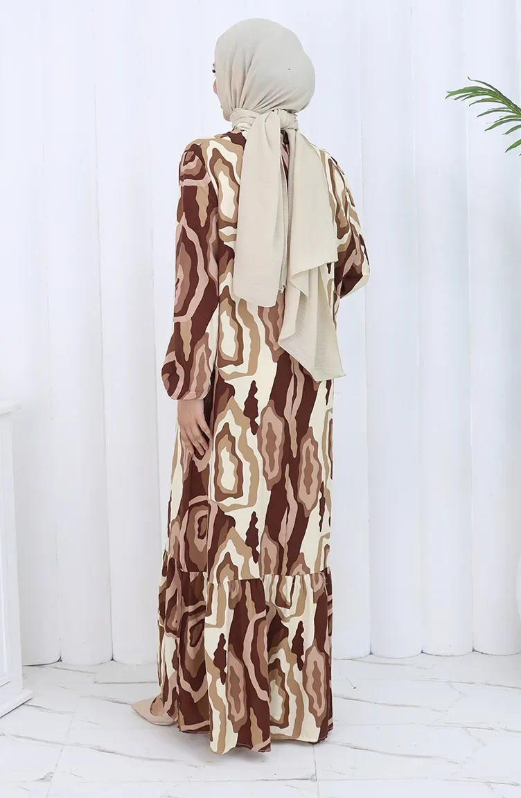 Robe à Motifs à Manches élastiques 2122-01 Marron Beige 2122-01