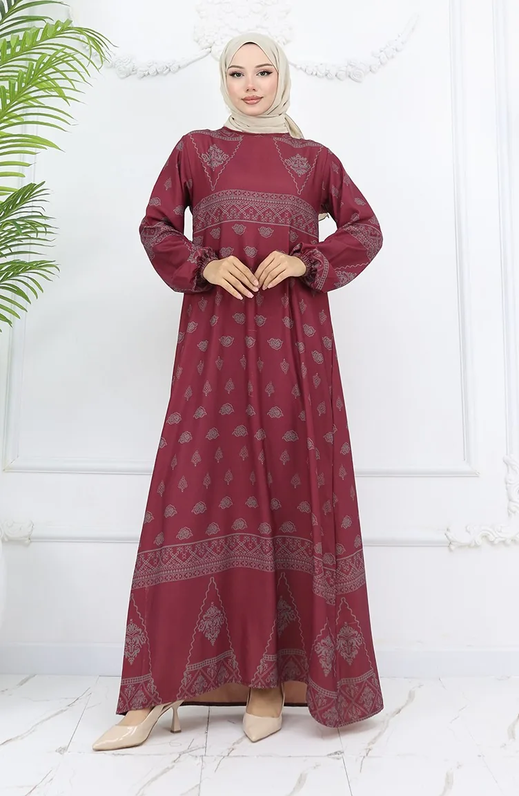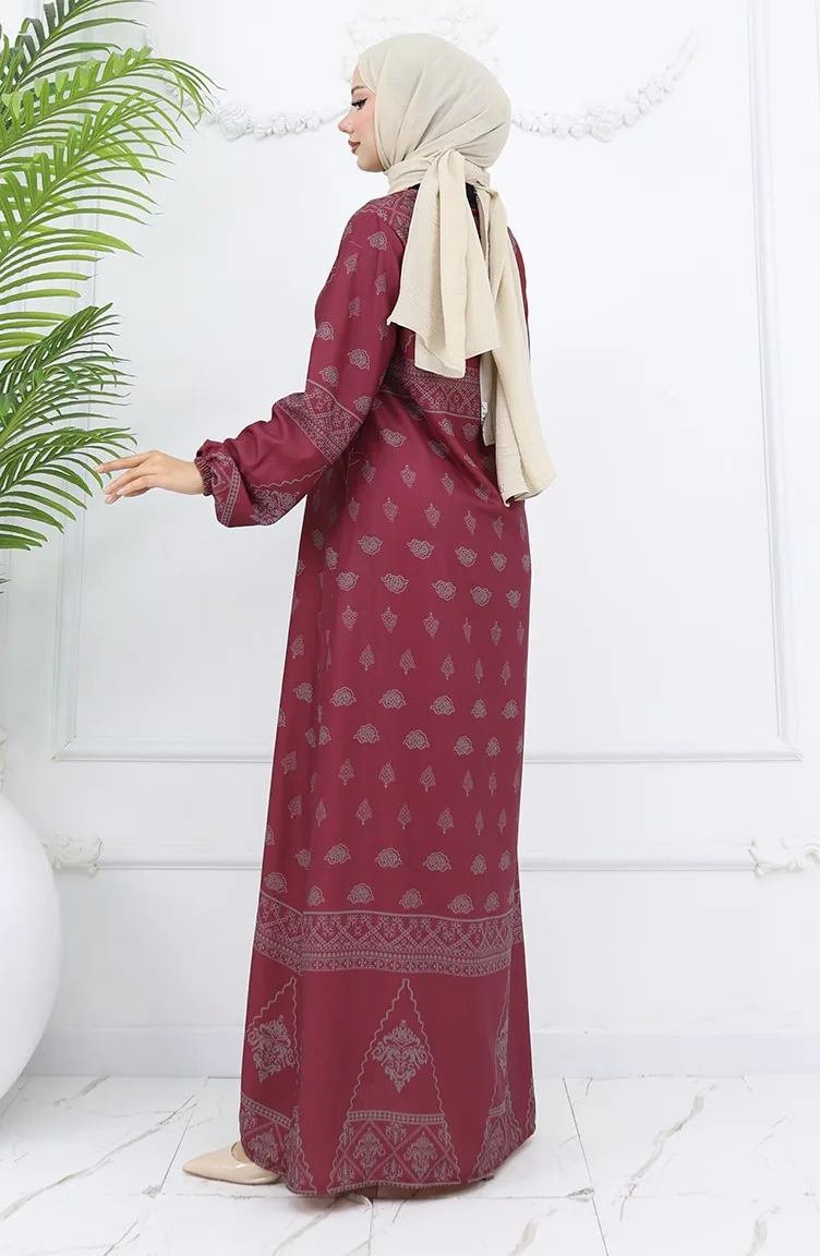 Robe à Motifs Avec Détails Tughra 0039-01 Rose Poudré 0039-01