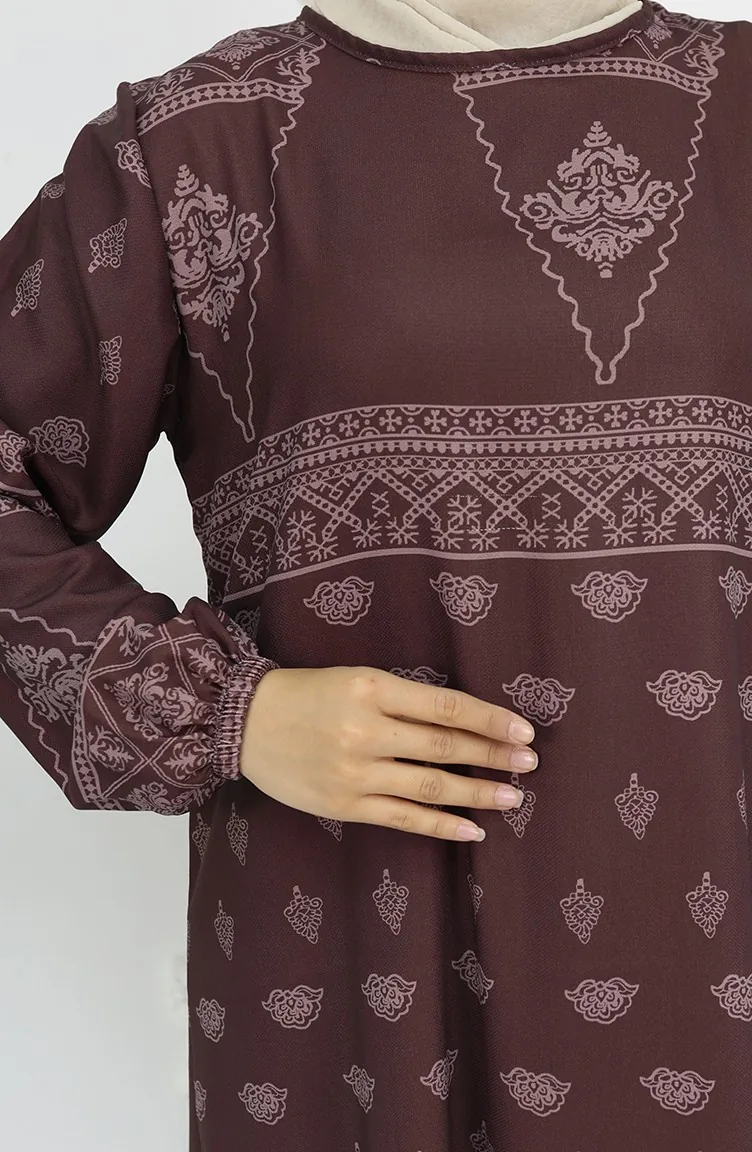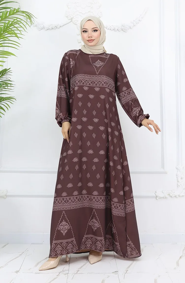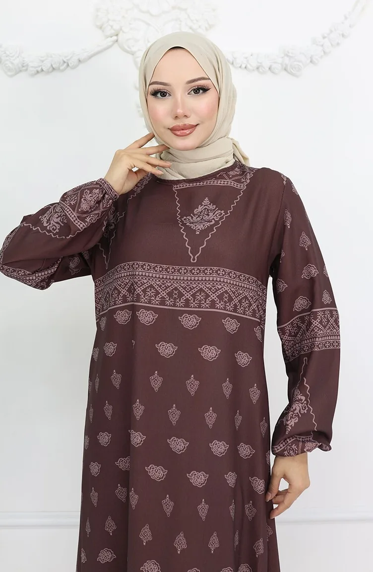 Robe à Motifs Avec Détails Tughra 0039-02 Marron 0039-02