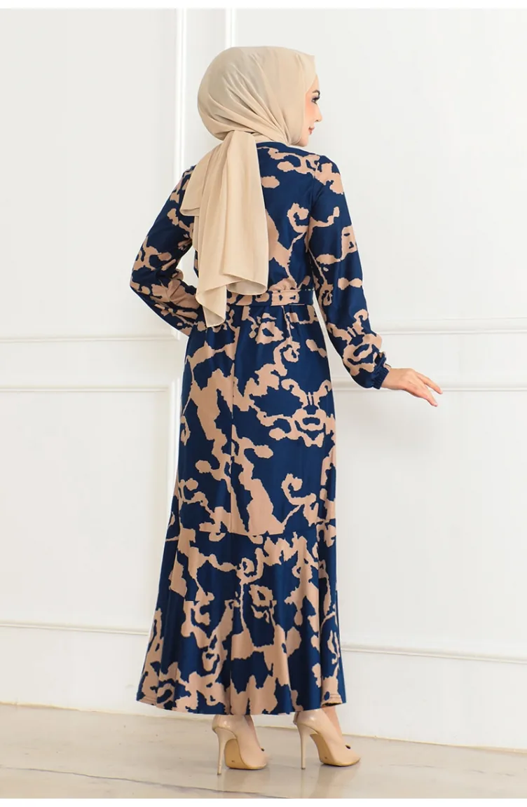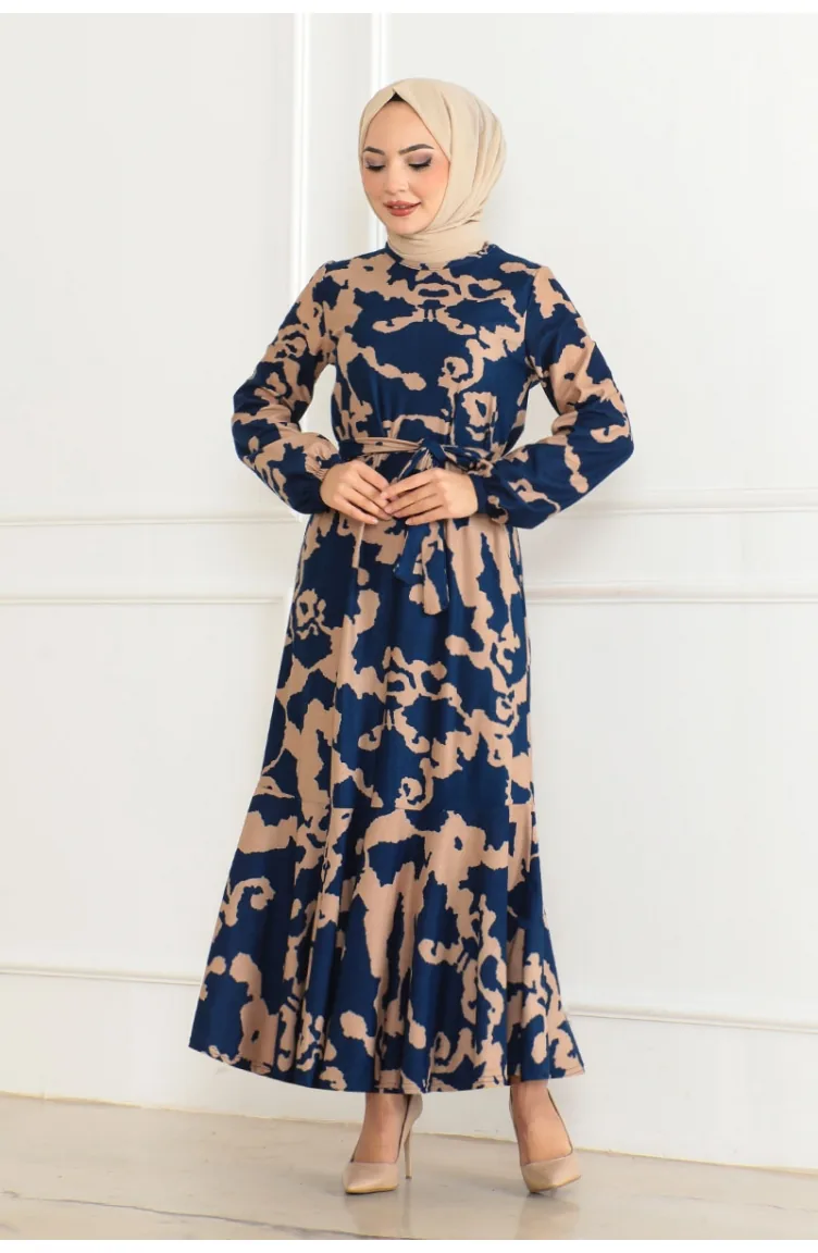 Robe à Motifs Avec Jupe à Volants 3151-04 Bleu Marine 3151-04
