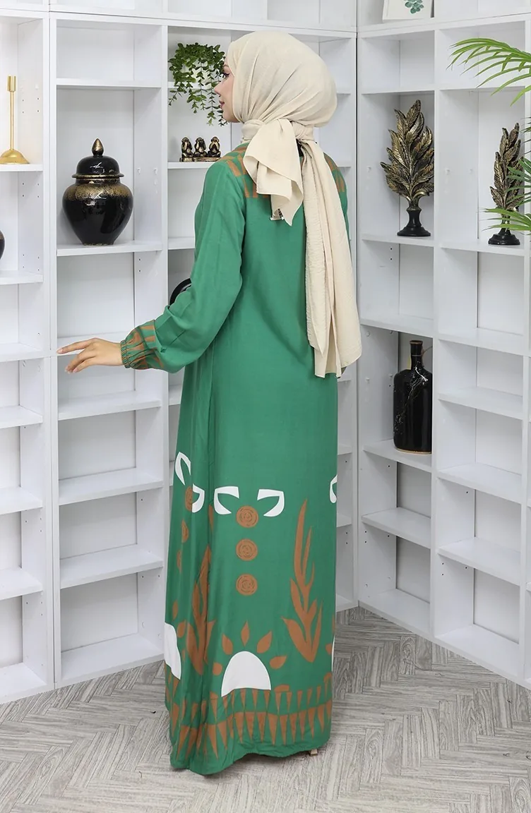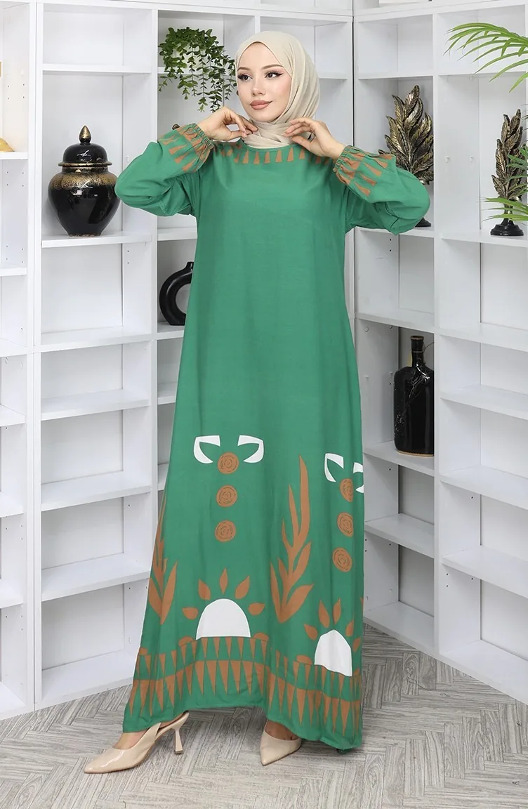 Robe à Motifs Avec Manches élastiques 0084-05 Vert 0084-05