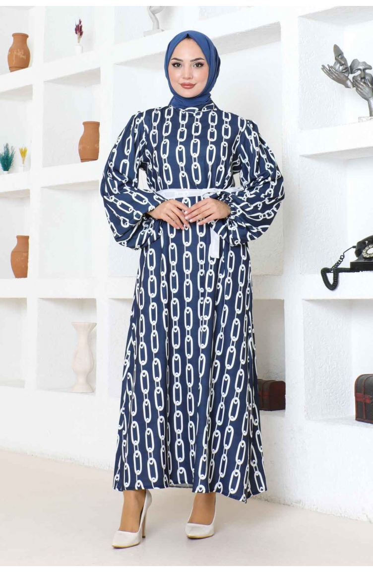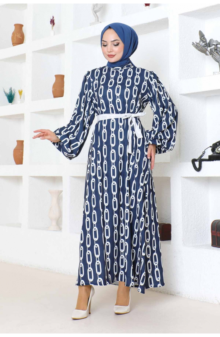 Robe A Motifs Chaine 1117-03 Bleu Marine 1117-03