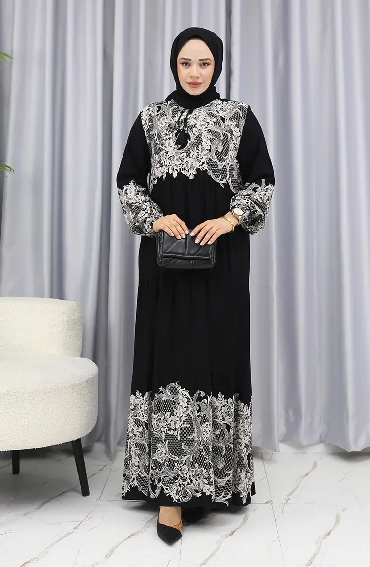 Robe à Motifs D`eau 4082-02 Noir Et Blanc 4082-02