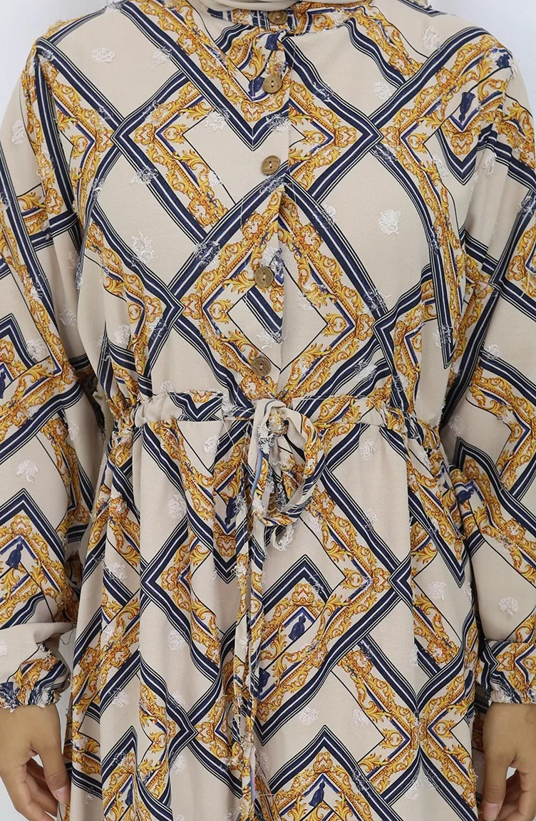 Robe à Motifs Demi-boutonnée 0108-01 Beige Bleu Marine 0108-01
