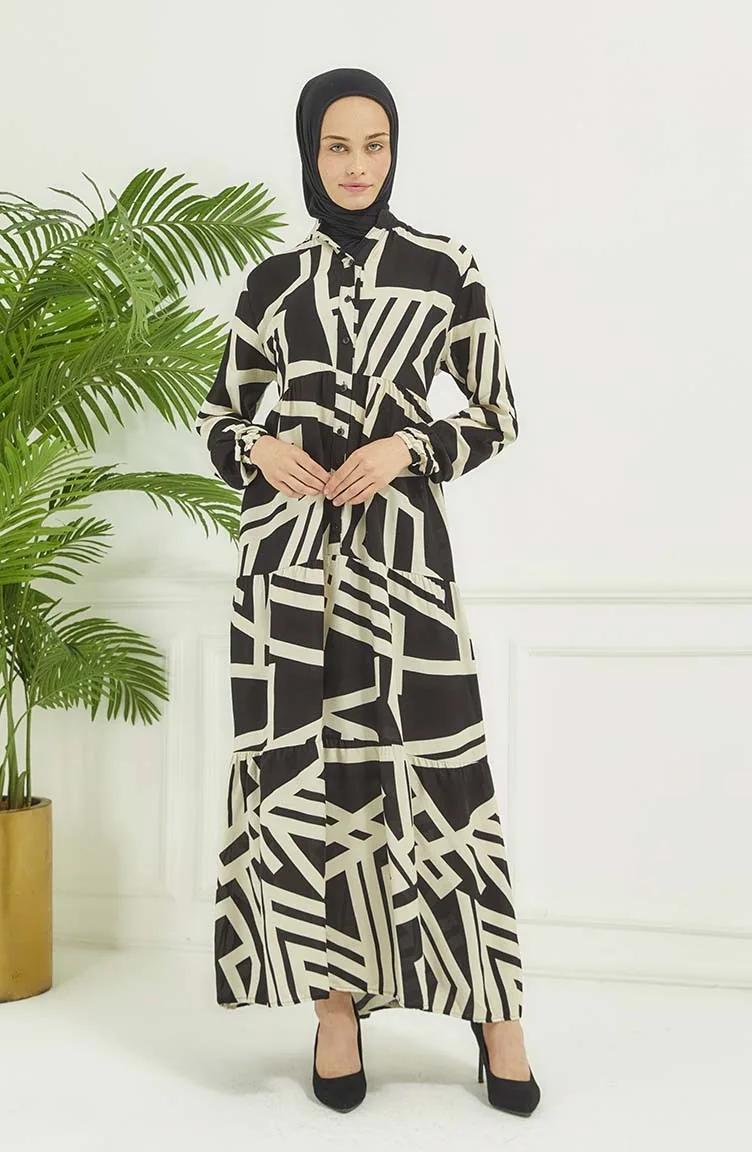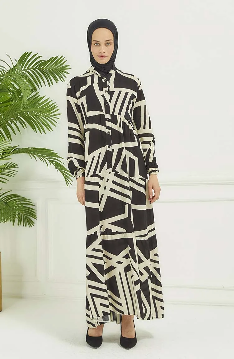 Robe A Motifs Géométriques 4106-04 Noir 4106-04