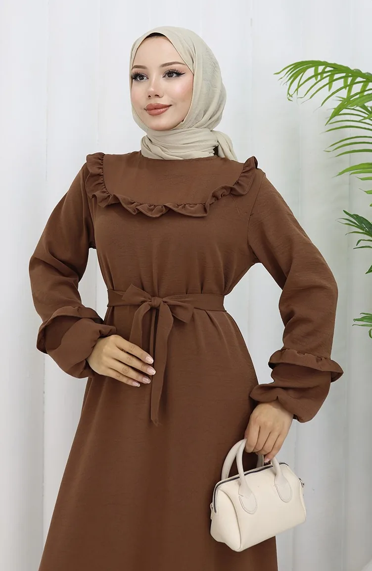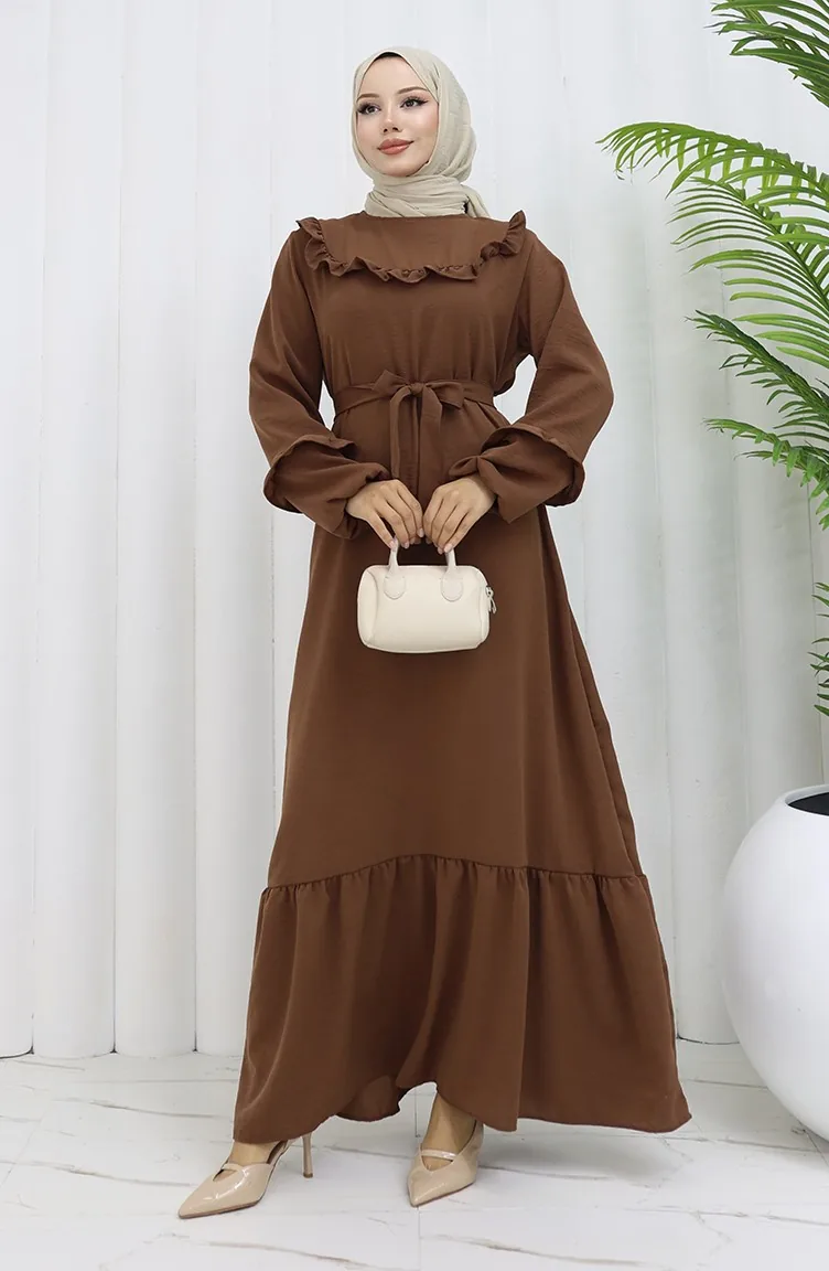 Robe à Volants En Tissu Aerobin 0023-07 Marron 0023-07