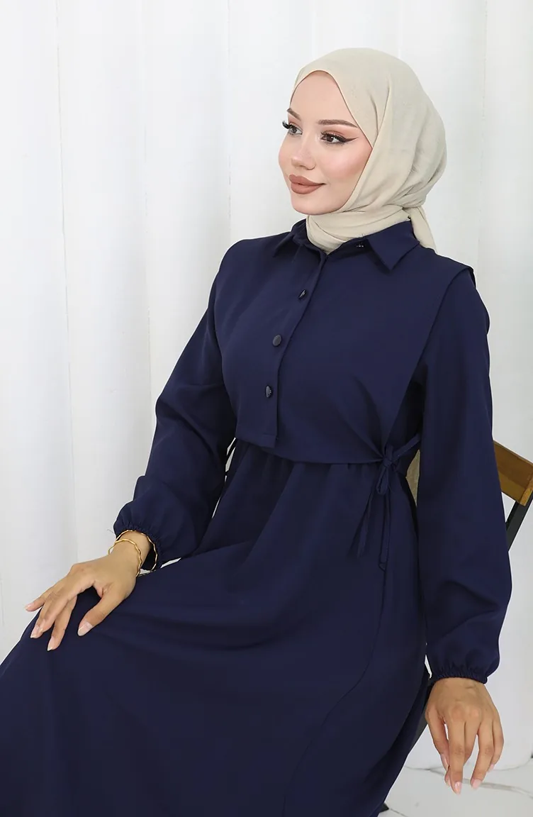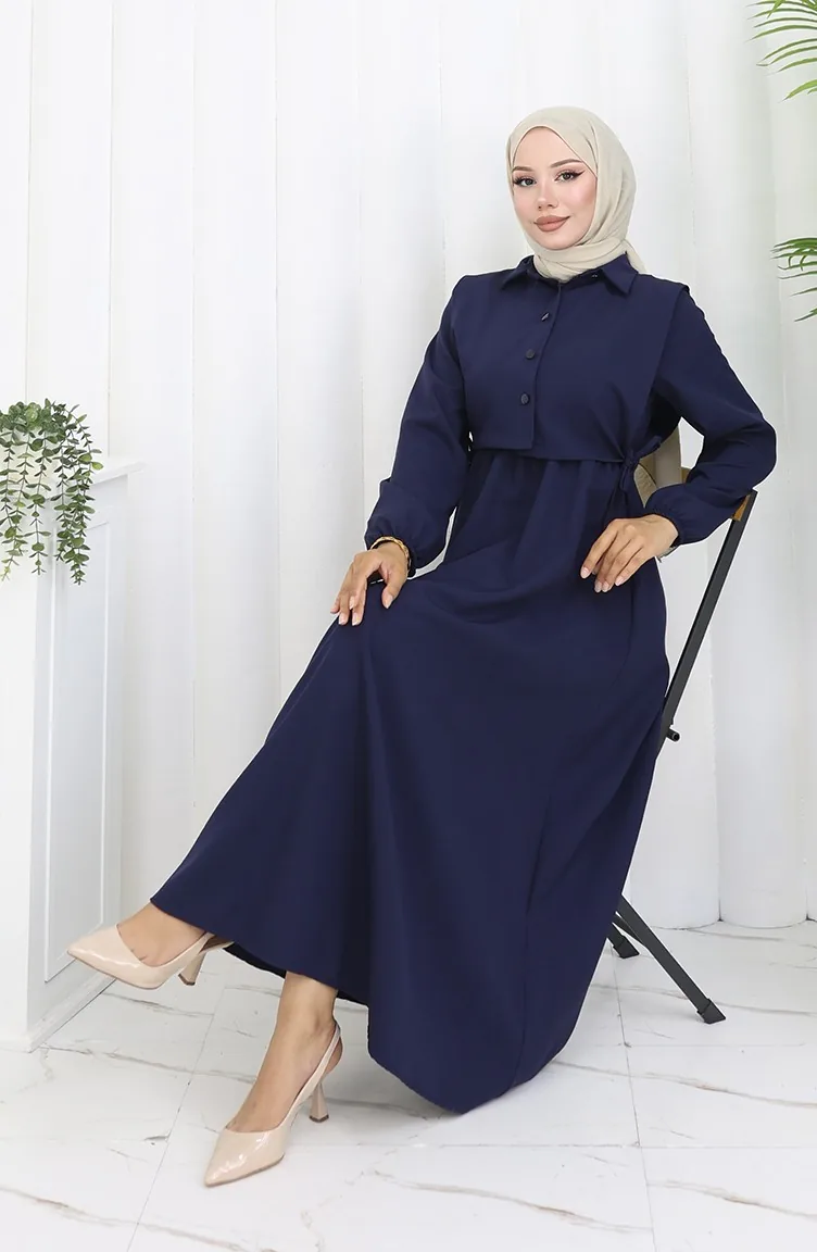Robe Boléra à Col Chemise 81898-06 Bleu Marine 81898-06
