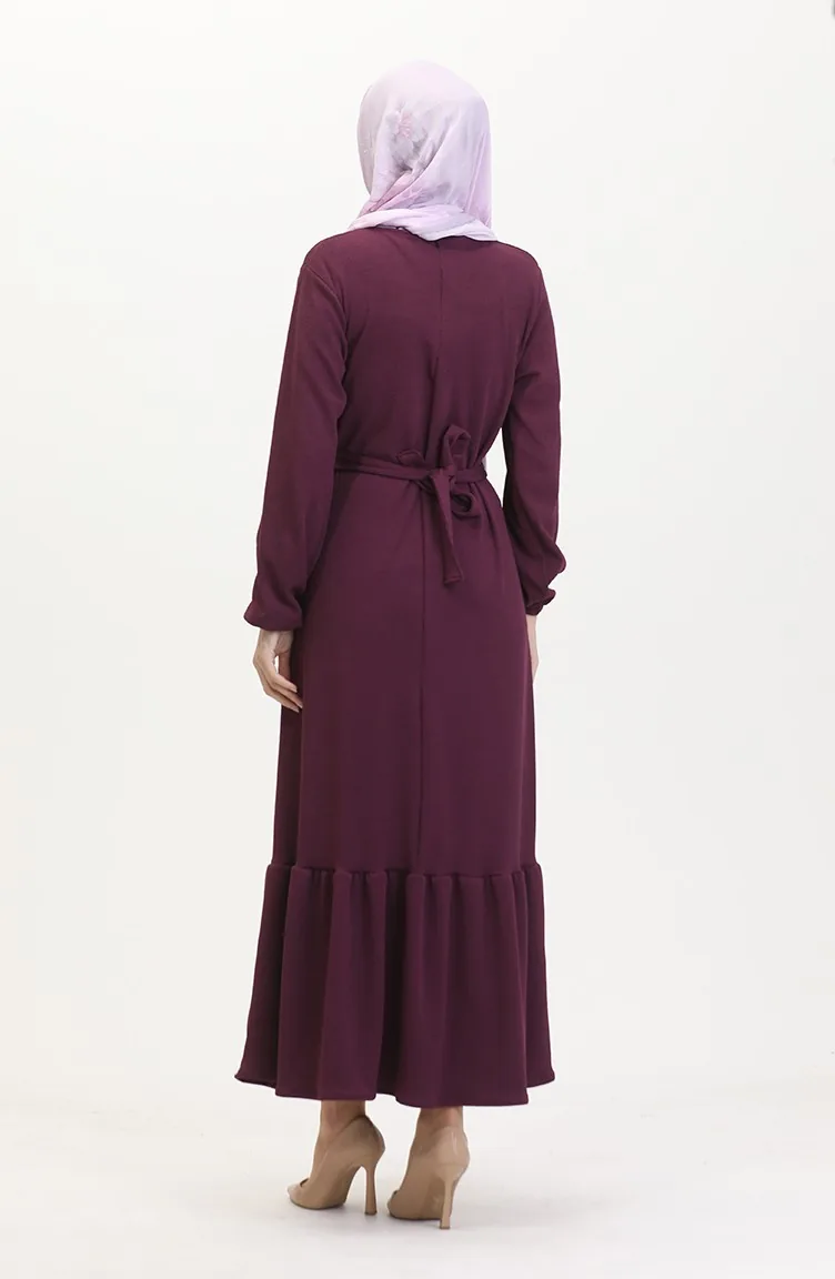 Robe Bordeaux Côtelée à Volants 2169-04 Prune 2169-04