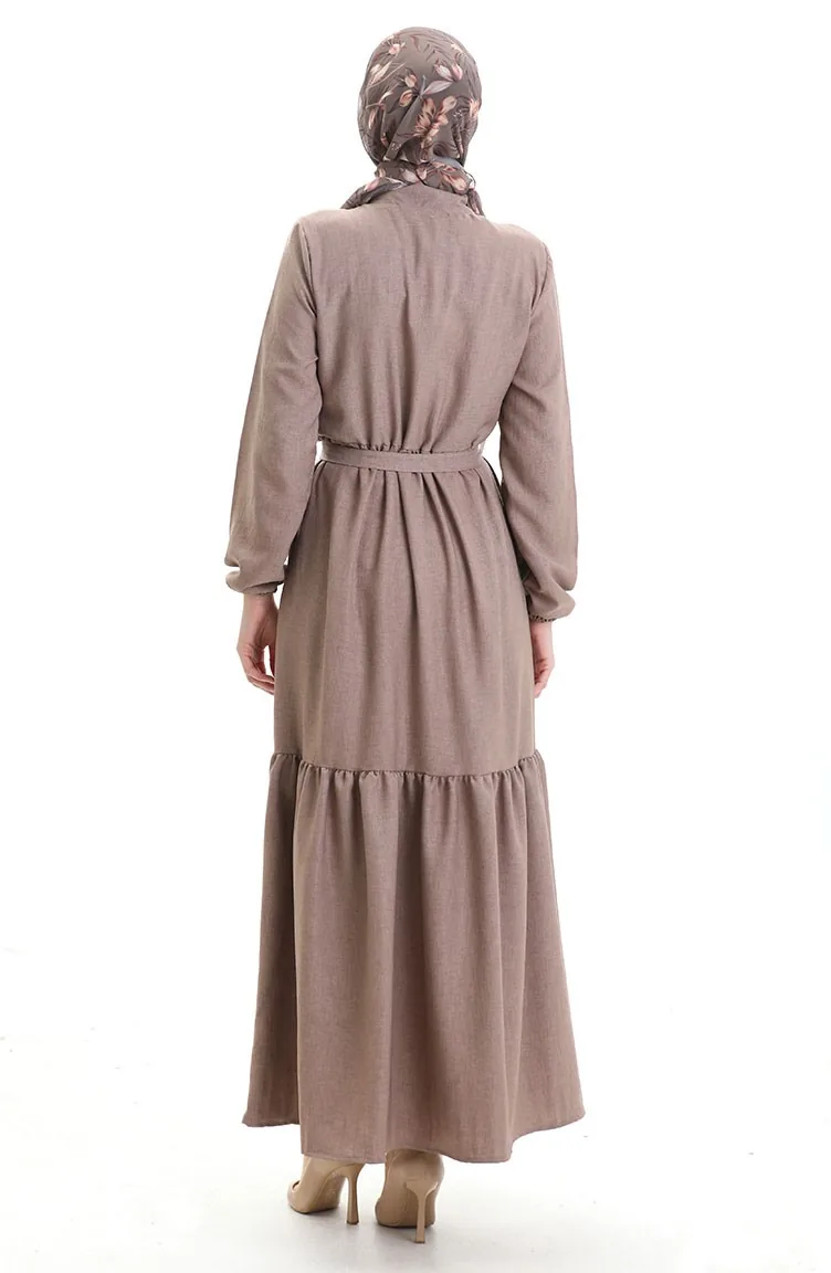 Robe Boutonnée à Manches élastiques 0104-02 Marron 0104-02