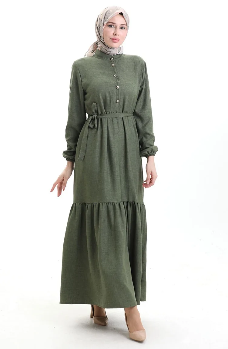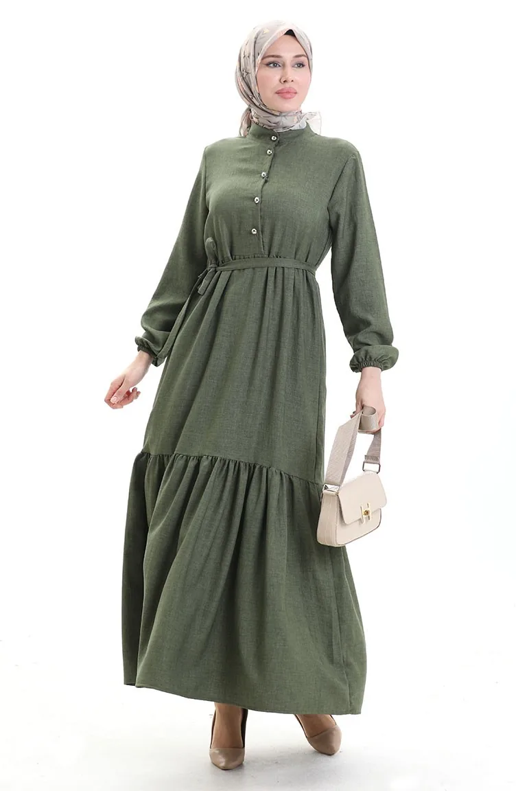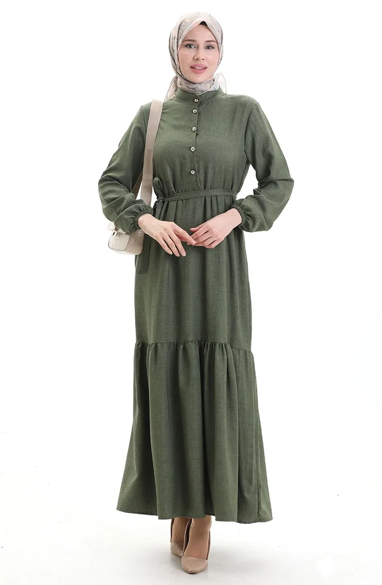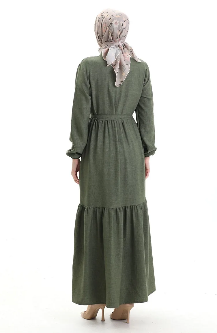 Robe Boutonnée à Manches élastiques 0104-03 Kaki 0104-03