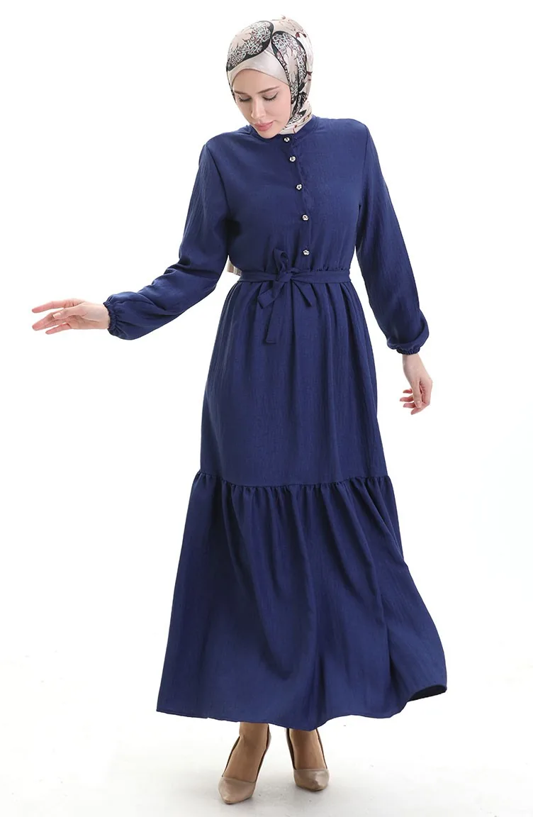 Robe Boutonnée à Manches élastiques 0104-05 Bleu Marine 0104-05