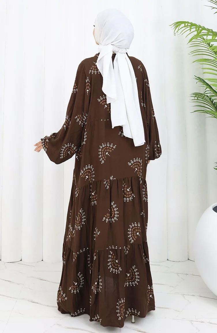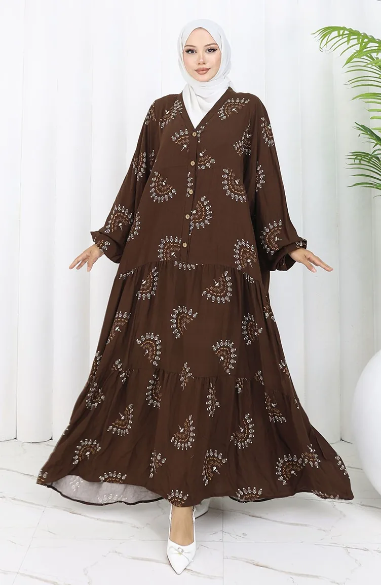 Robe Boutonnée à Motifs En Tissu Viscose 0088-01 Marron 0088-01