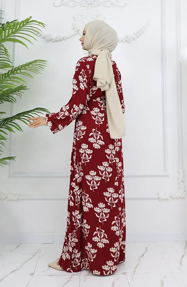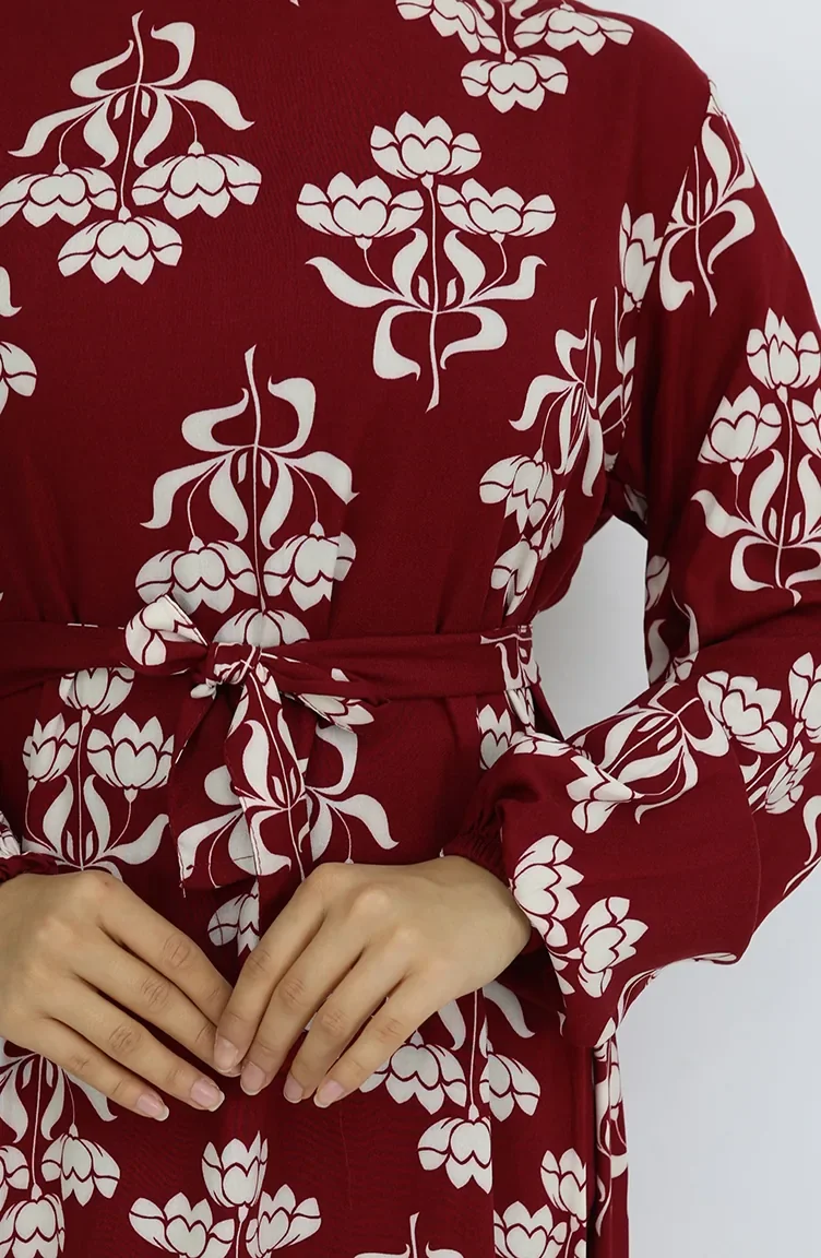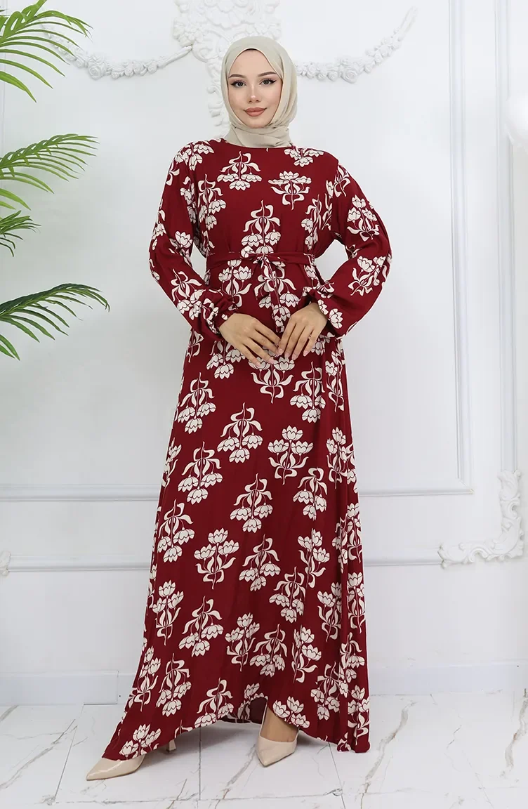 Robe Ceinturée à Motifs En Viscose 2009-01 Rouge Bordeaux 2009-01