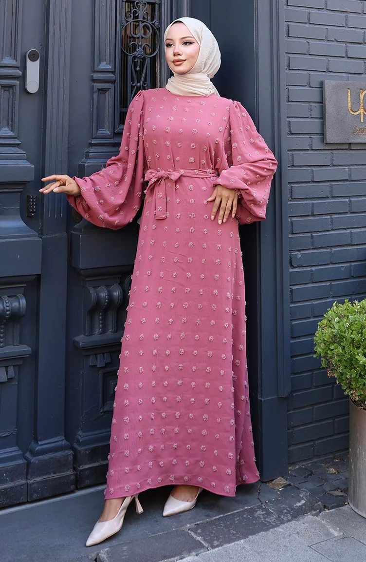 Robe Ceinturée En Tissu Aerobin 0130-02 Rose Poudré 0130-02