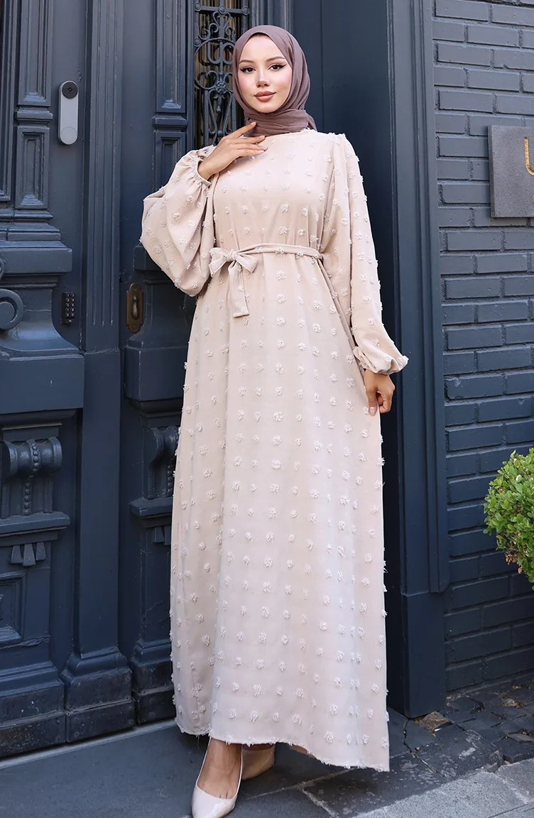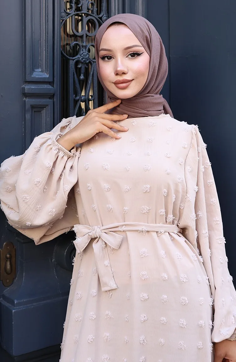 Robe Ceinturée En Tissu Aerobin 0130-04 Vison 0130-04