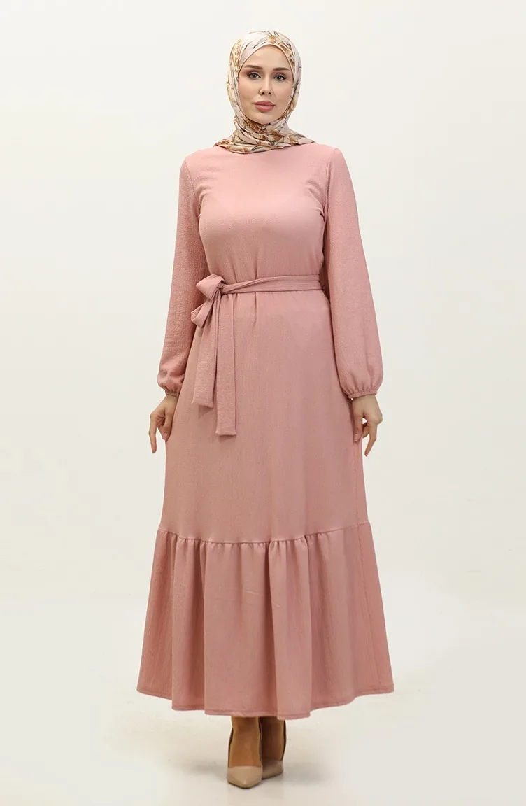 Robe Ceinturée Ourlet Fronce 0202DA-04 Poudre 0202DA-04