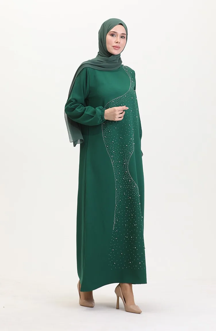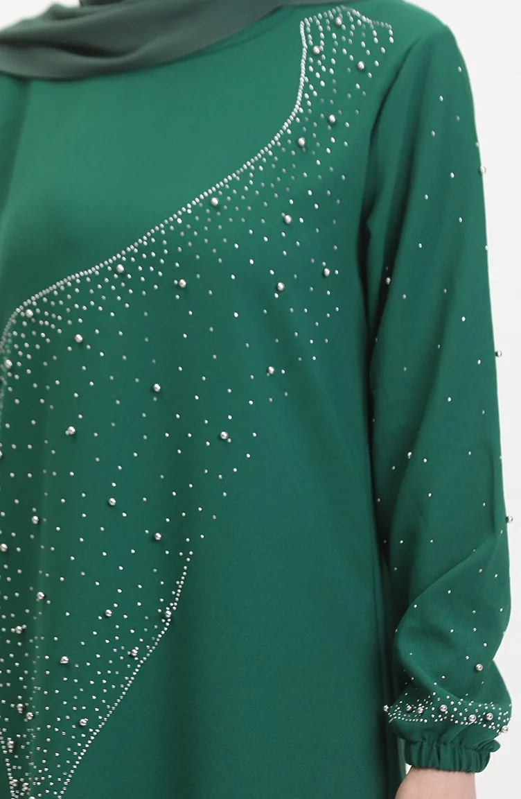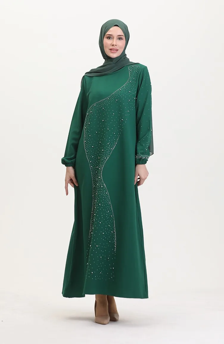 Robe De Soirée Imprimée Pierre 0407-05 Vert Emeraude 0407-05
