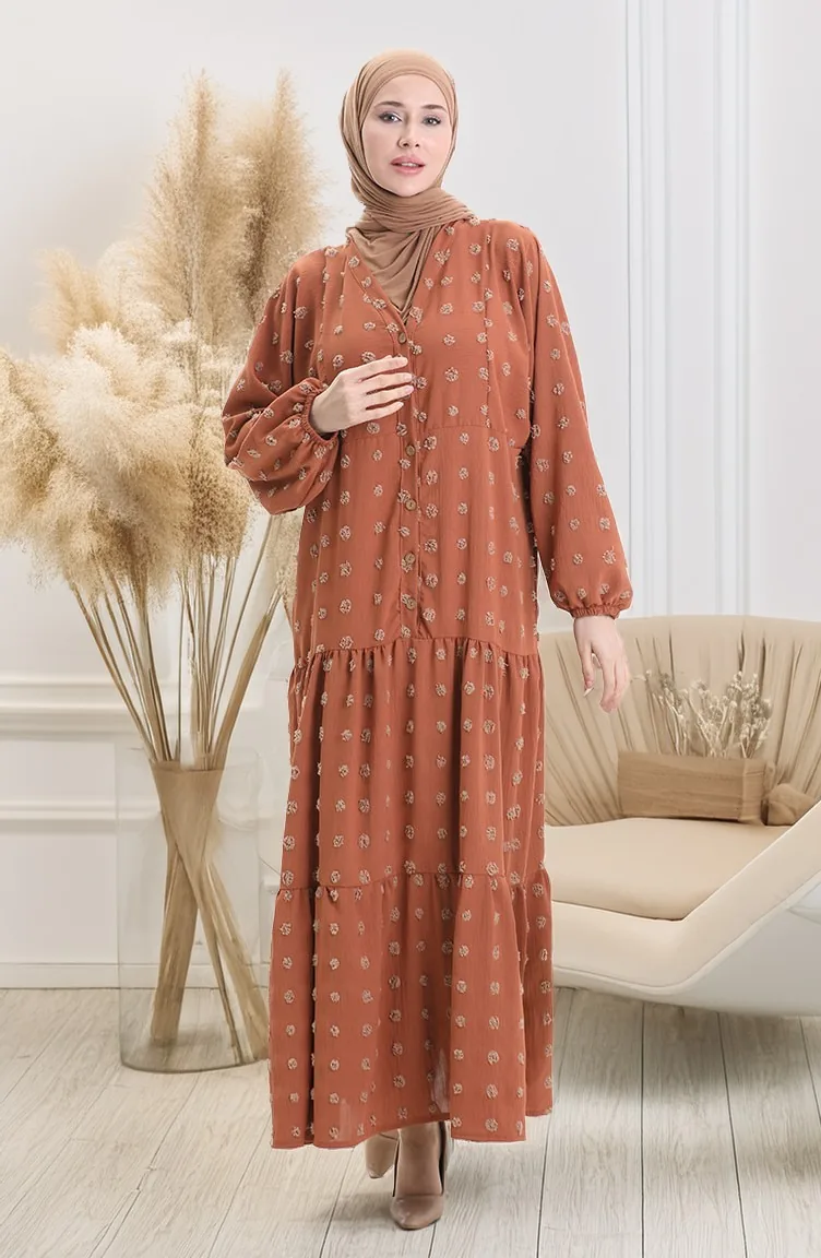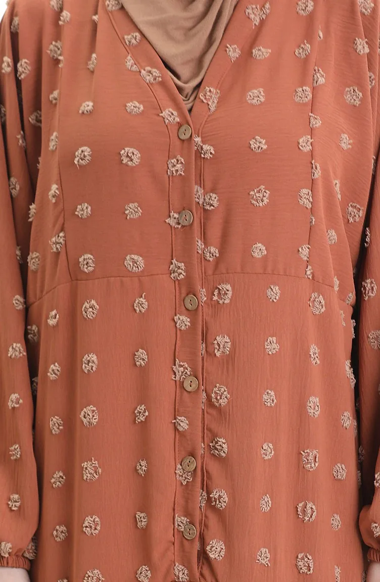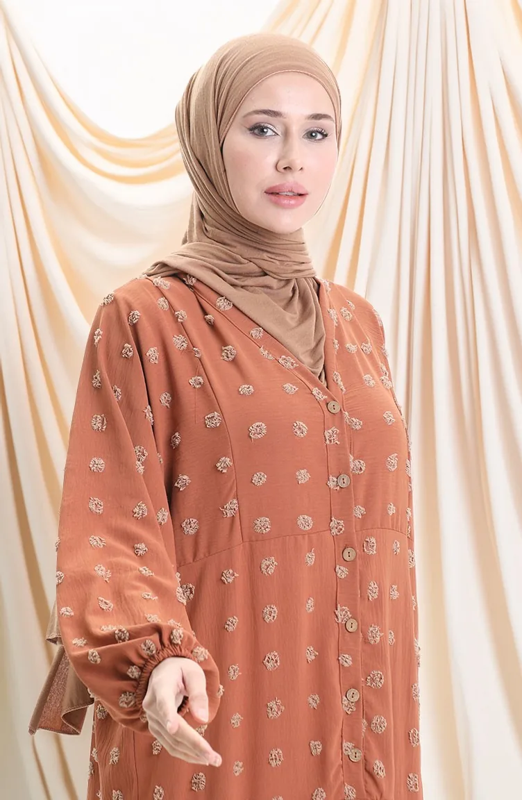 Robe Demi-boutonnée En Tissu Viscose 0062-02 Brique 0062-02