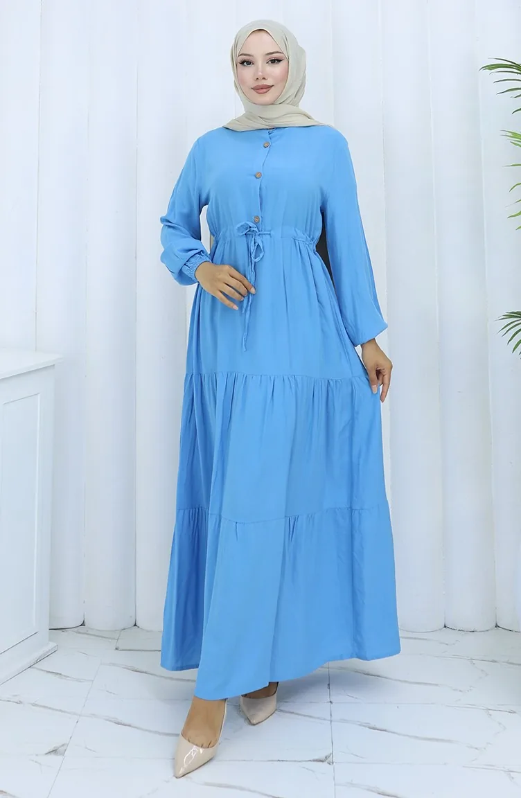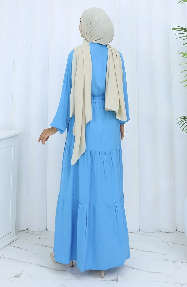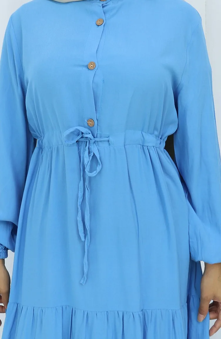 Robe Demi-boutonnée En Tissu Viscose 0085-10 Bleu 0085-10