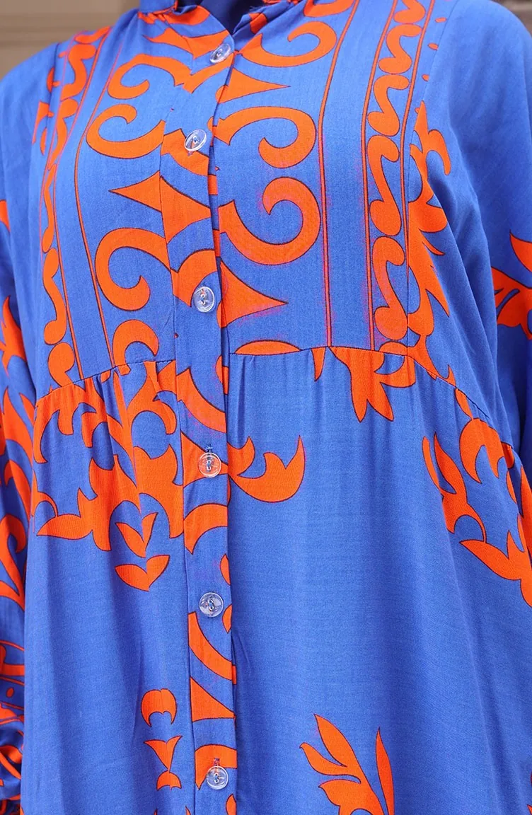 Robe Demi-boutonnée En Tissu Viscose 2081-05 Saxe Orange 2081-05
