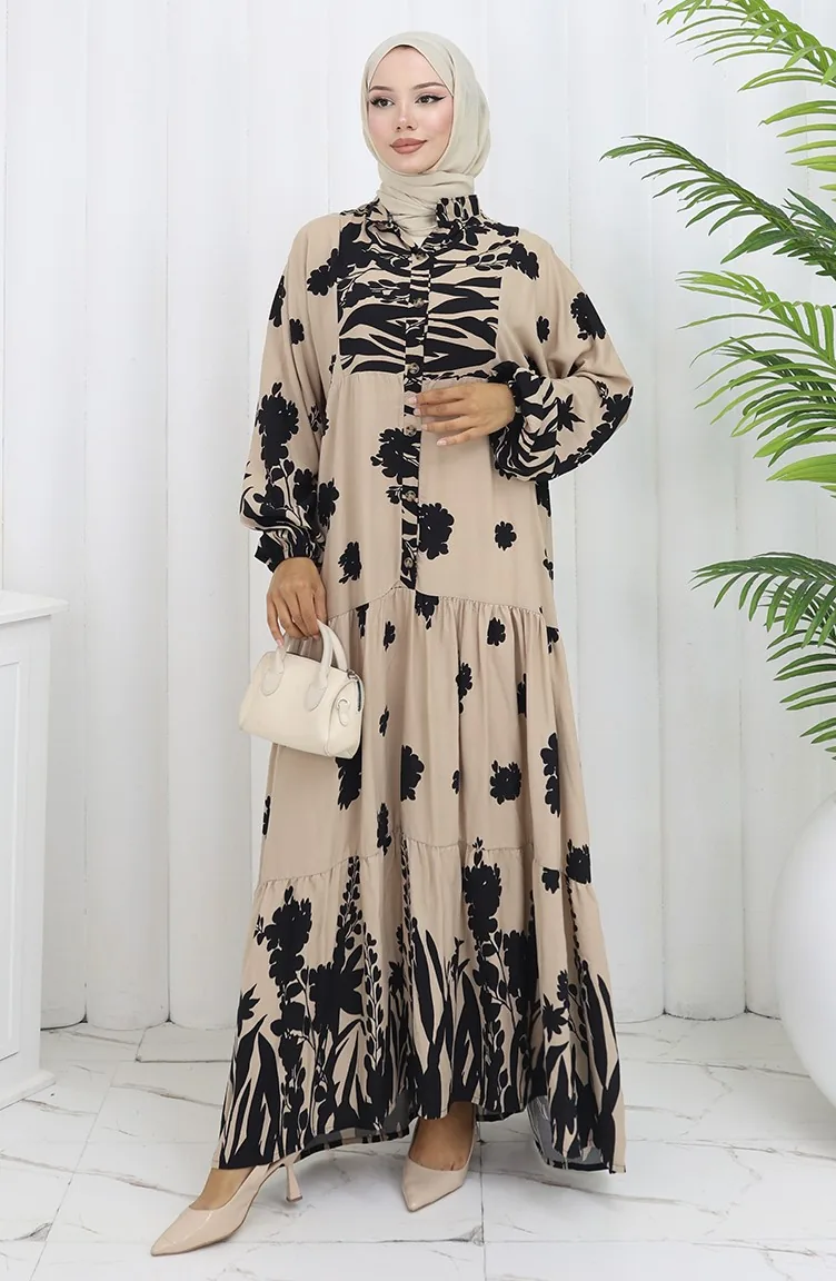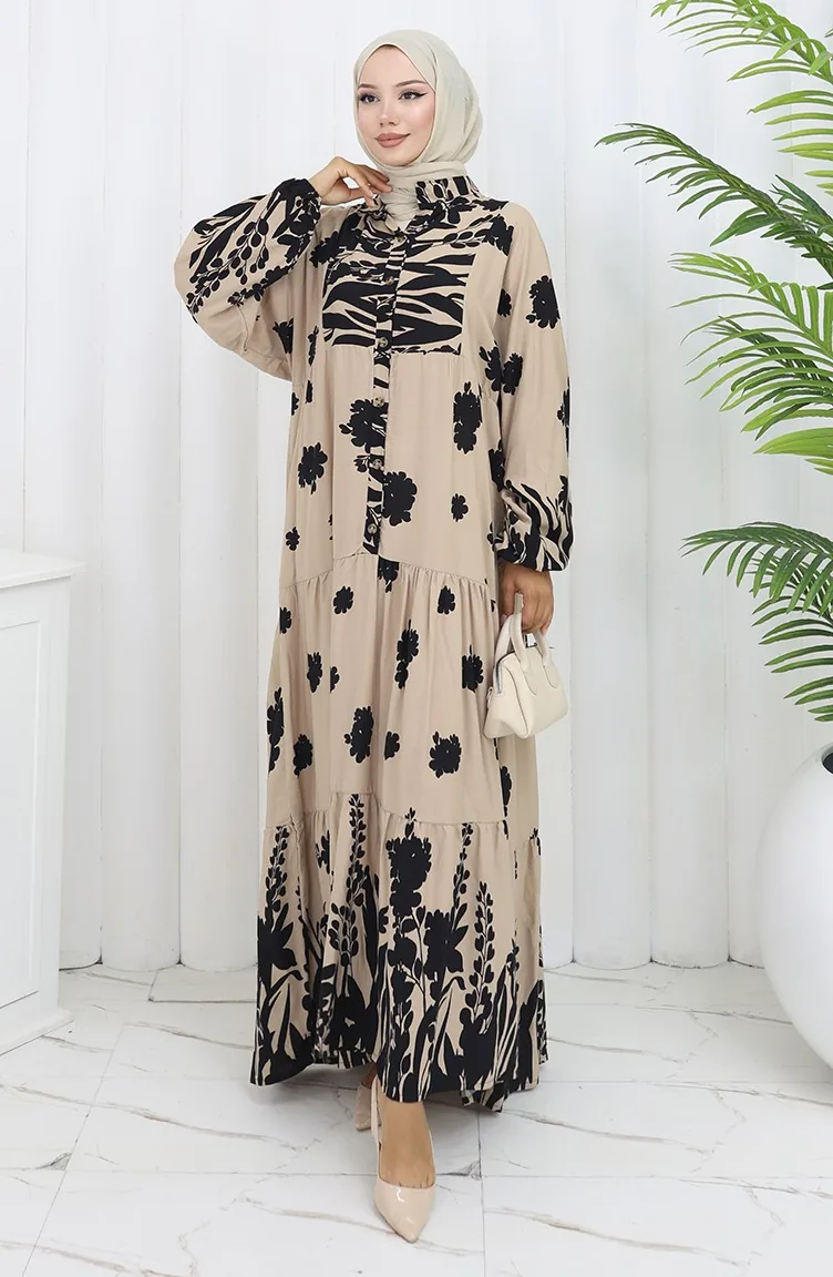 Robe Demi-boutonnée En Tissu Viscose 2133-05 Noir Beige 2133-05