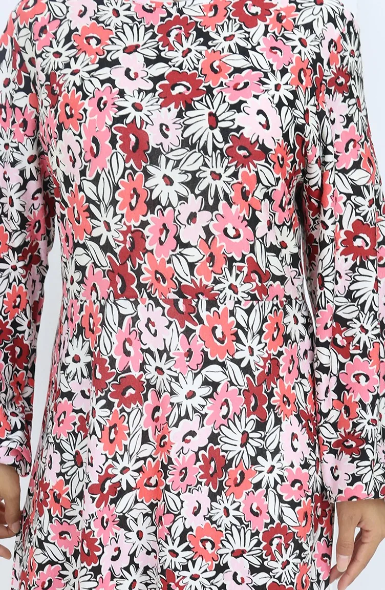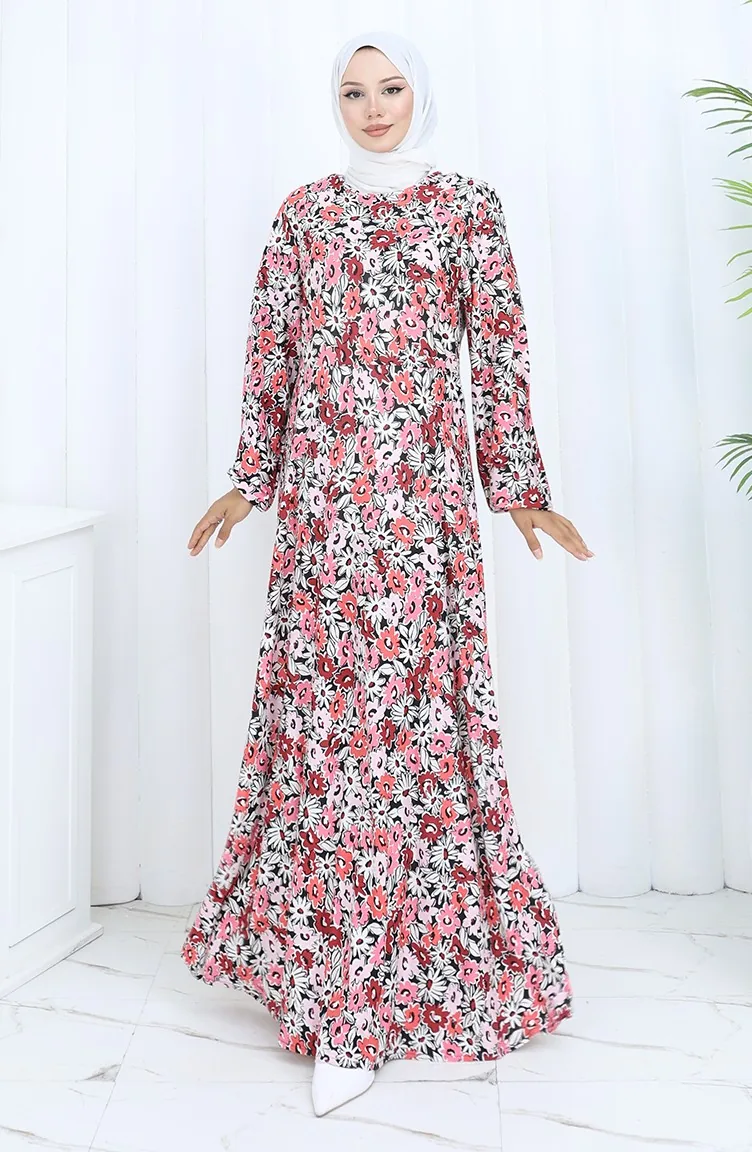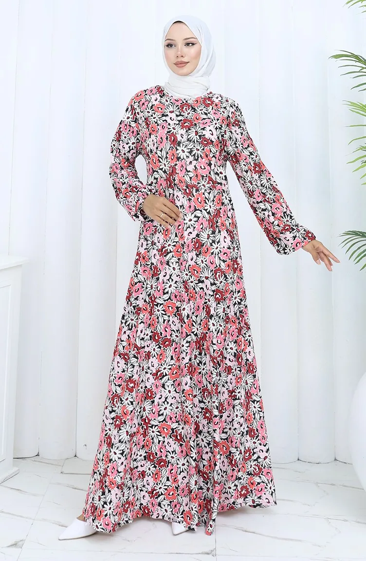 Robe En Coton Peigné à Motifs 2135A-02 Rose Poudré 2135A-02