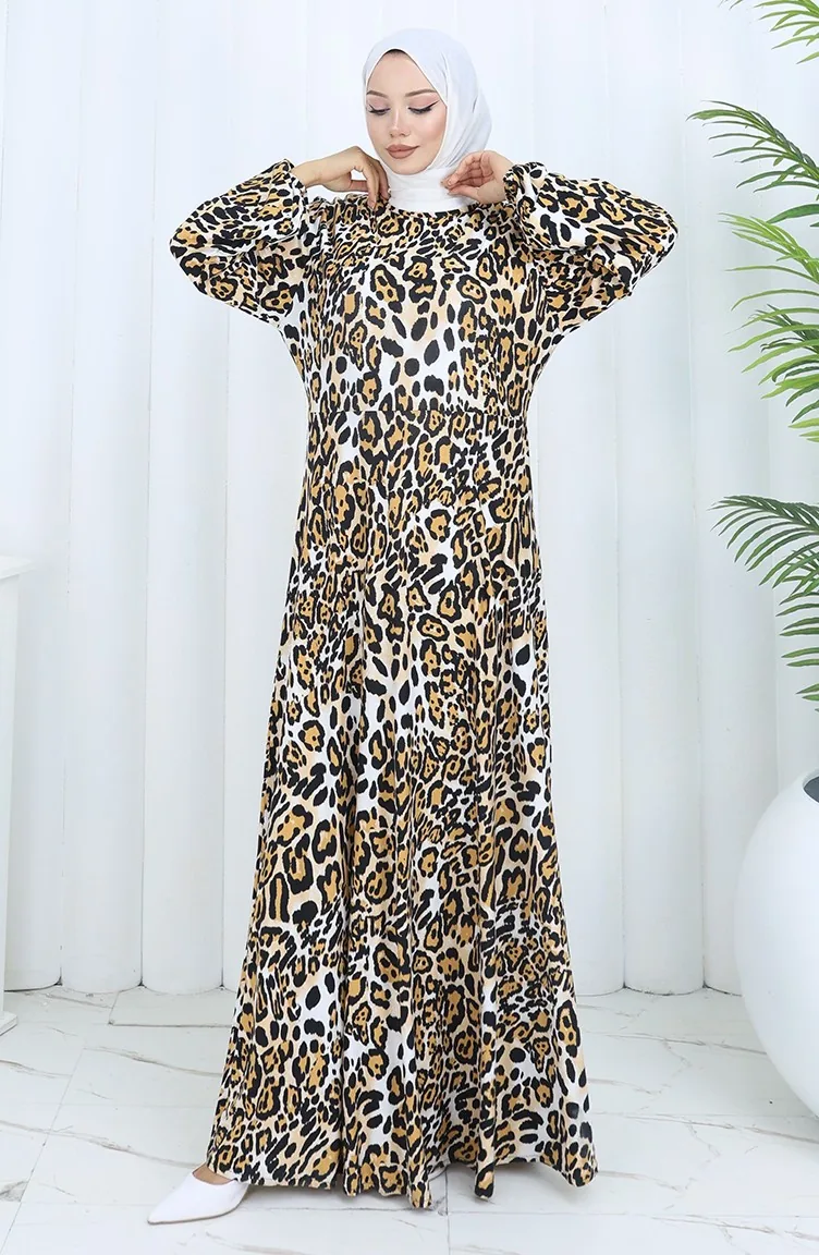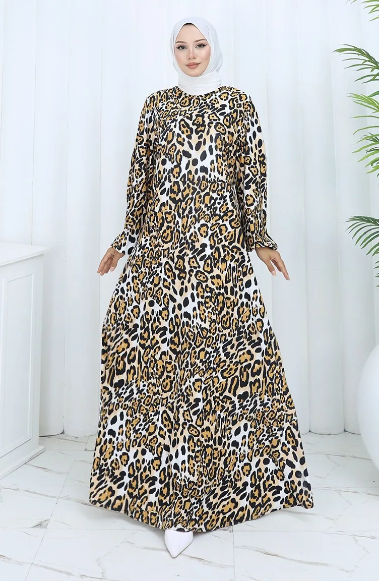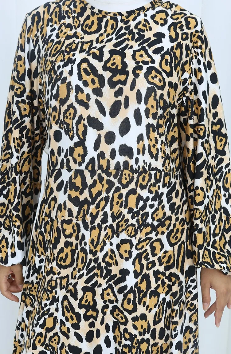 Robe En Coton Peigné à Motifs 2136B-01 Noir Lait Café 2136B-01