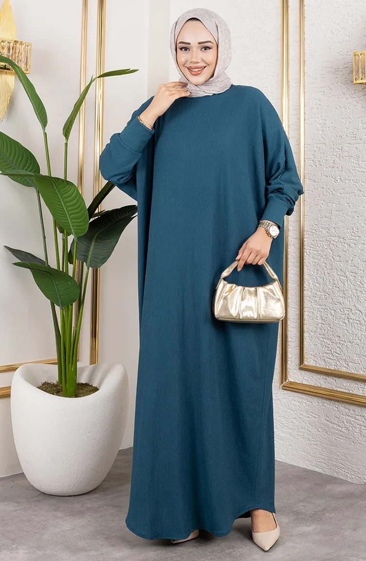 Couleur Pétrole. Tissu bouclé. Simple. Manches chauve-souris. Col Zéro. Adapté pour les 4 saisons. Produit porté par le mannequin est sa propre taille.