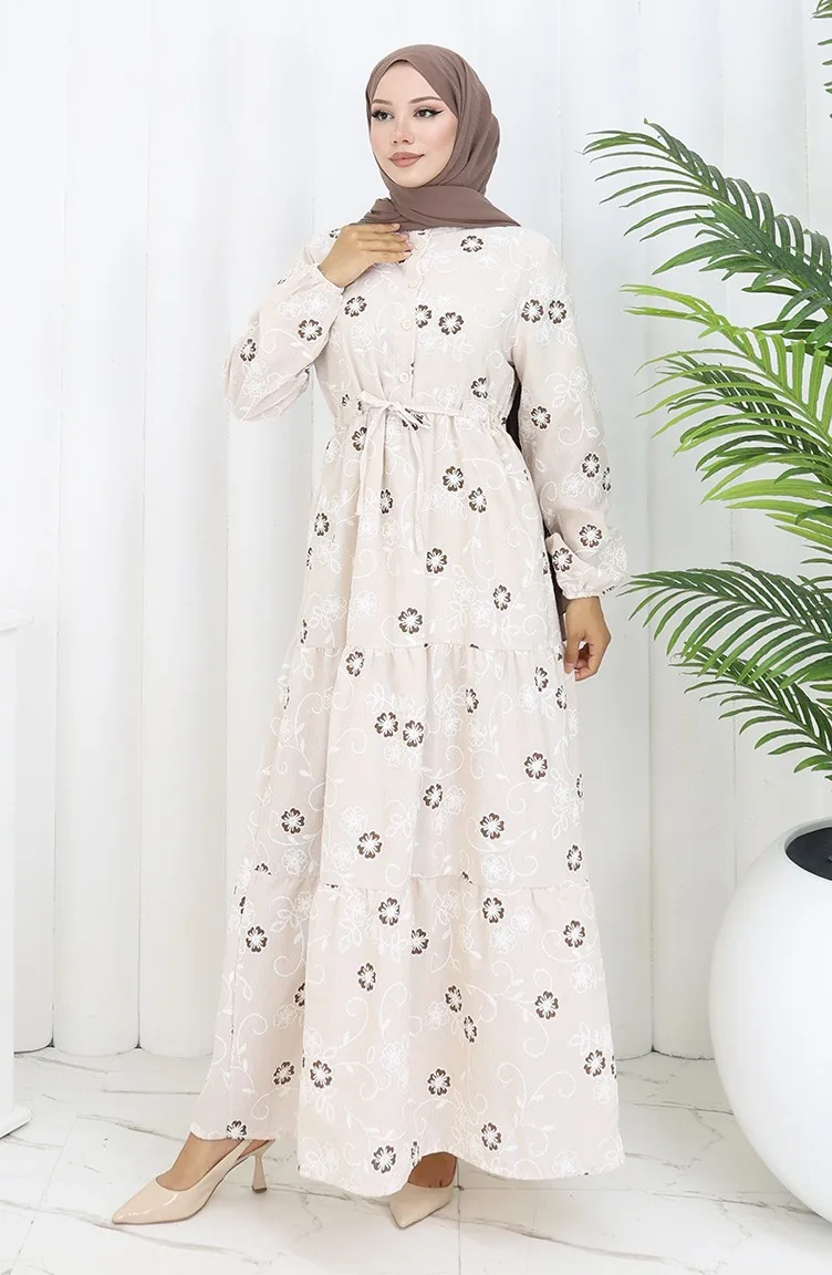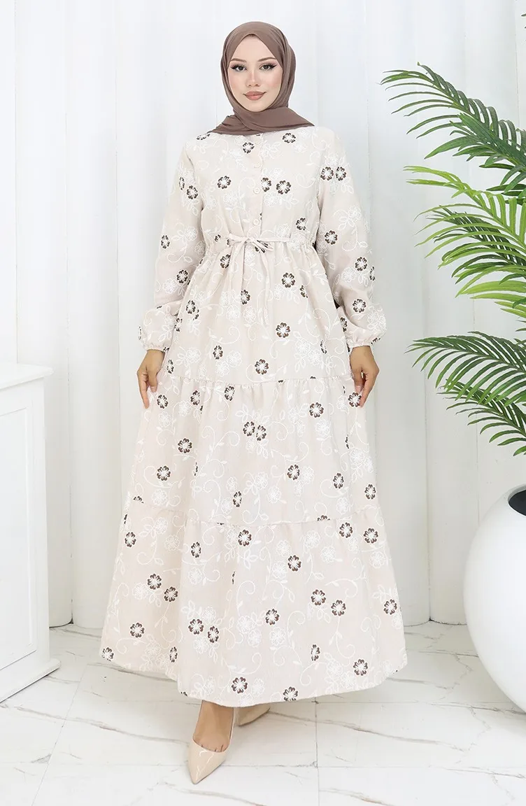 Robe En Lin à Demi-boutonnage 2097-02 Beige Marron 2097-02