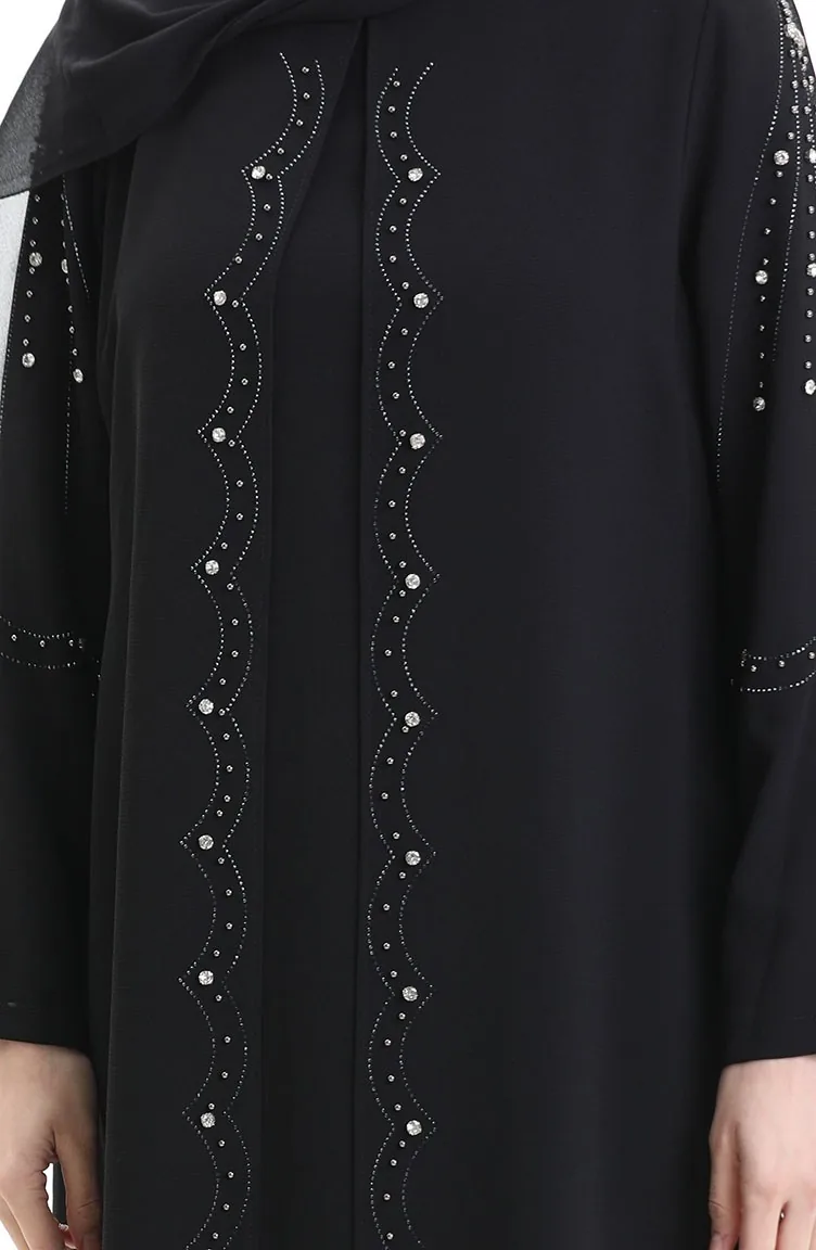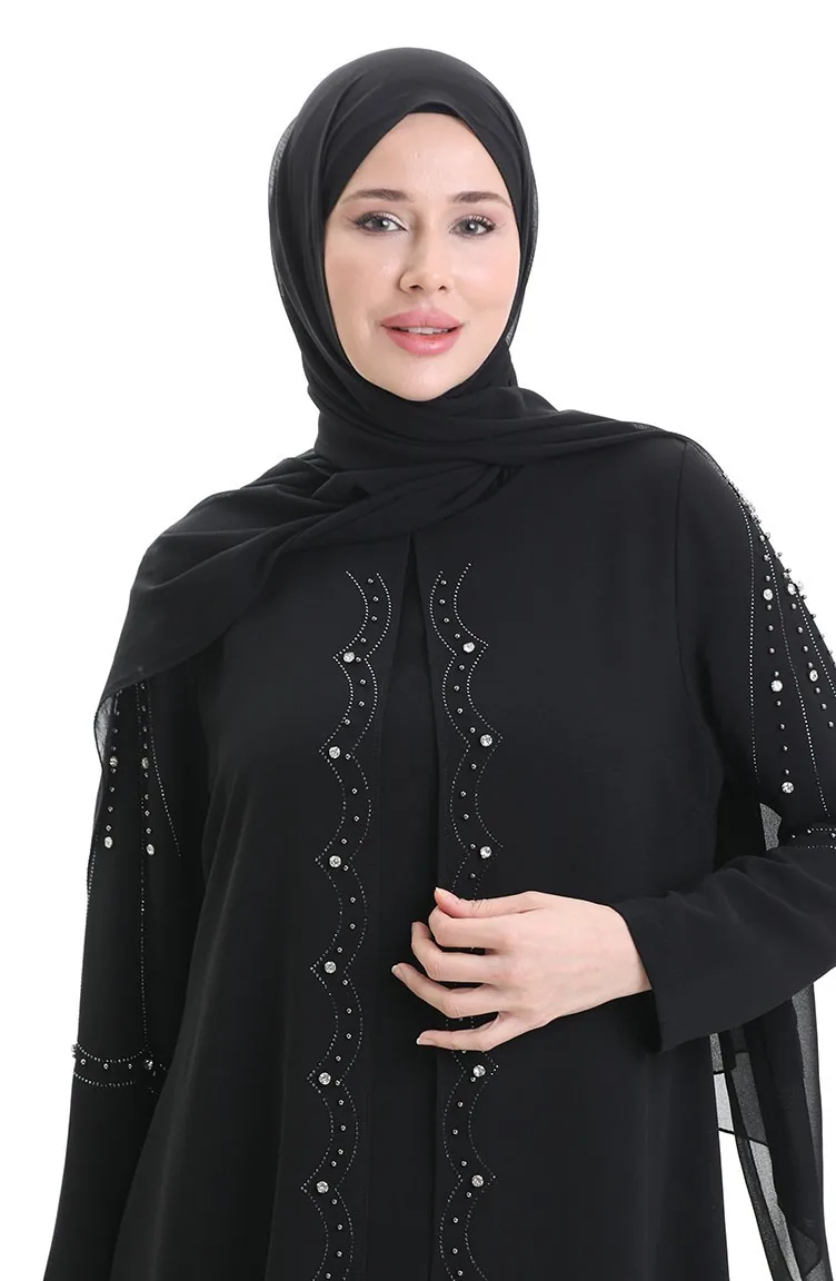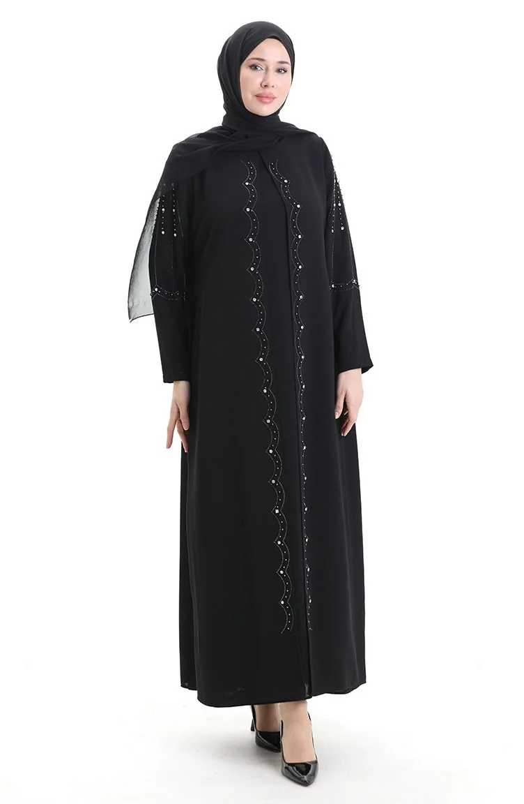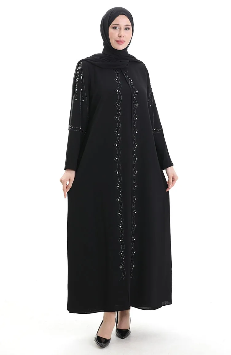 Couleur Noire. Tissu ruche. Simple. Avec doublure. Col Zéro. Adapté pour les 4 saisons. Option de grande taille disponible.