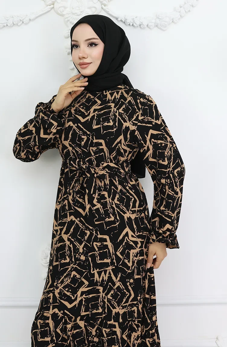 Robe En Tissu Viscose à Manches élastiques 2006-05 Noir Lait Café 2006-05